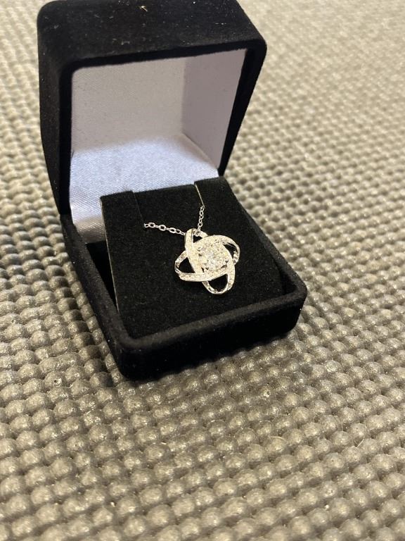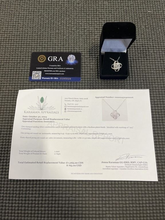 1.00 CT GRA CERTIFIED ROUND BRILLIANT CUT MOISSANITE STONE VVS D COLOR WITH THE 40 ROUND BRILLIANT CUT CUBIC ZIRCONIA STONES SET IN DUAL OVAL HALO AND SET IN 925 SILVER PENDANT RETAIL VALUE $1,065.00