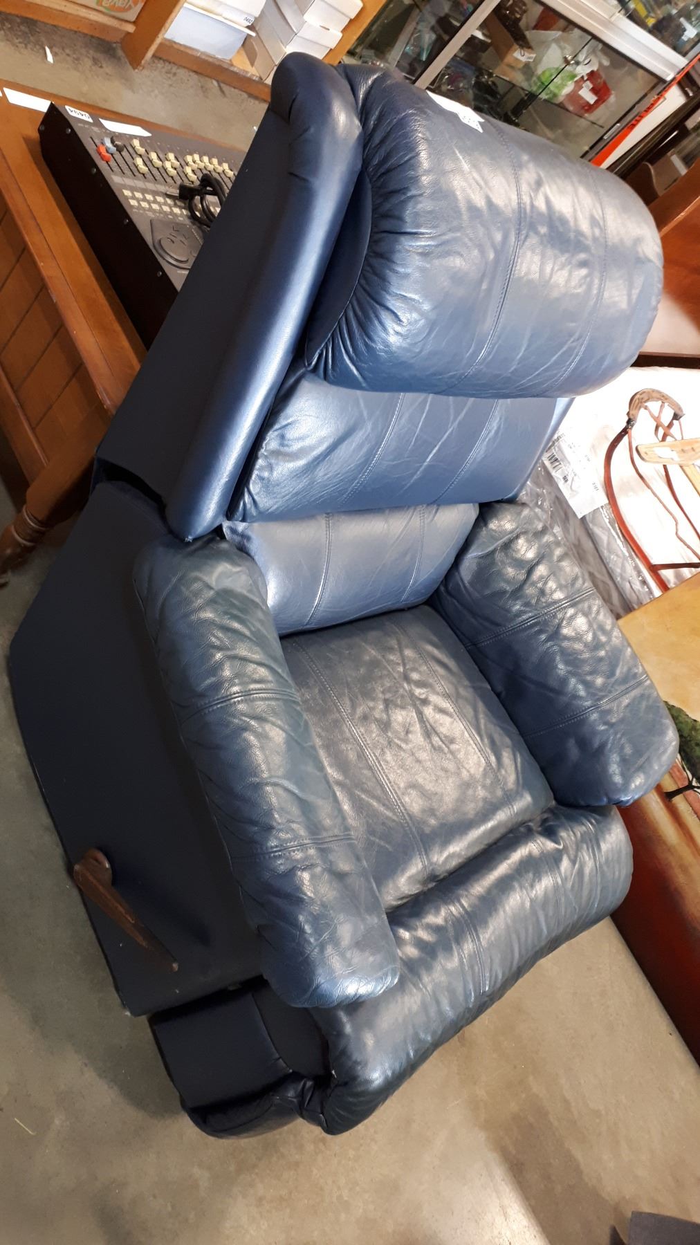 1 BLUE LEATHER RECLINER CHAIRS - WORKS