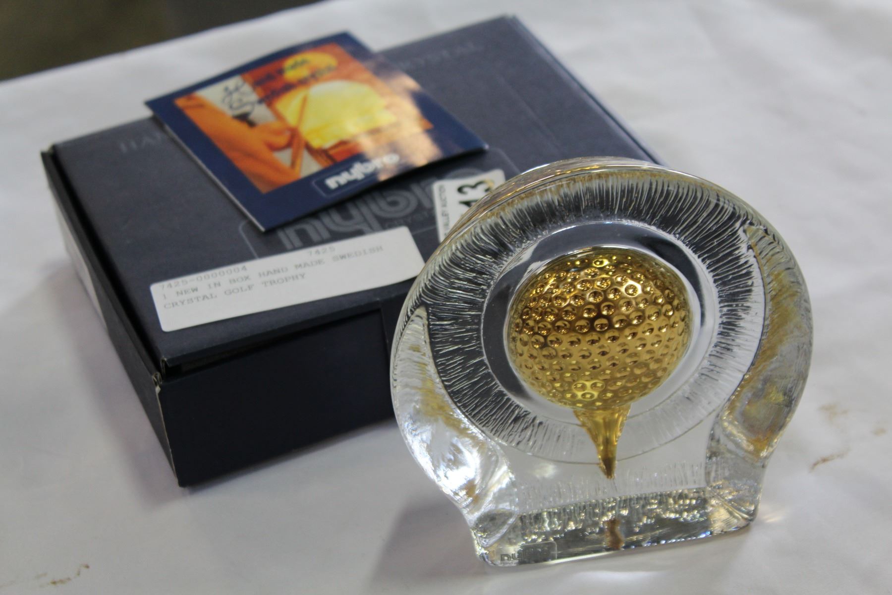 1 NEW IN BOX HAND MADE SWEDISH CRYSTAL GOLF TROPHY