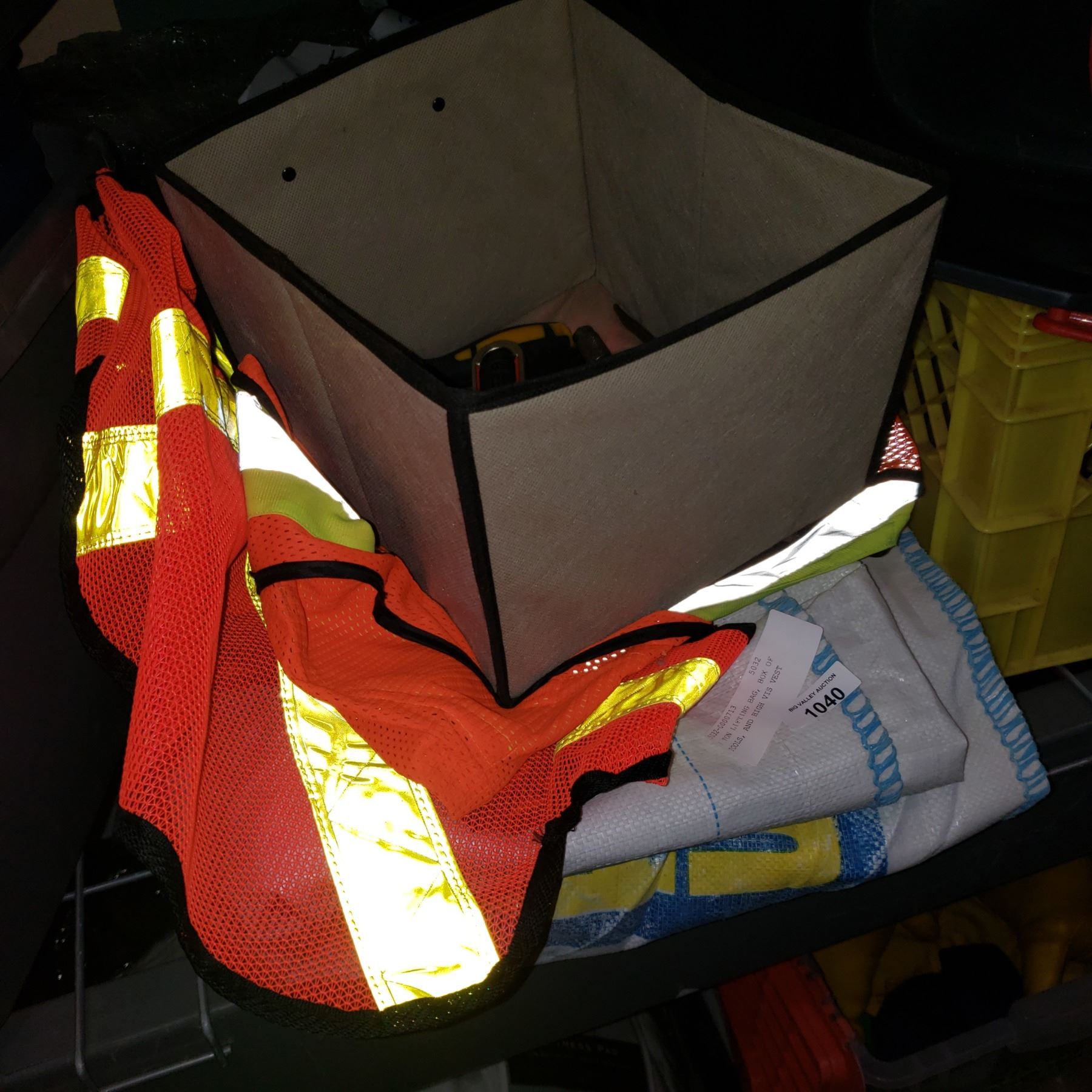1 TON LIFTING BAG, BOX OF TOOLS, AND HIGH VIS VEST