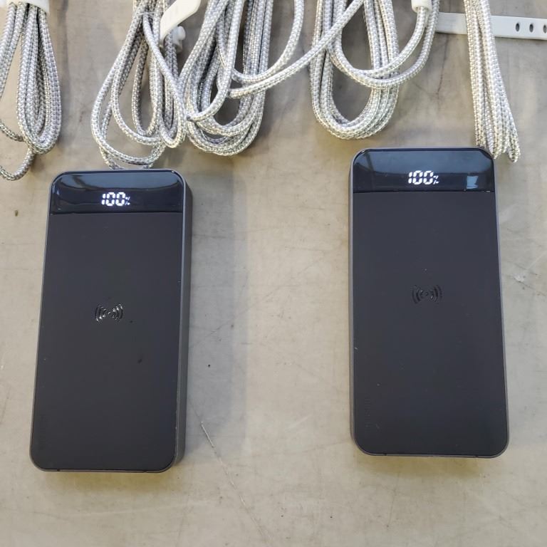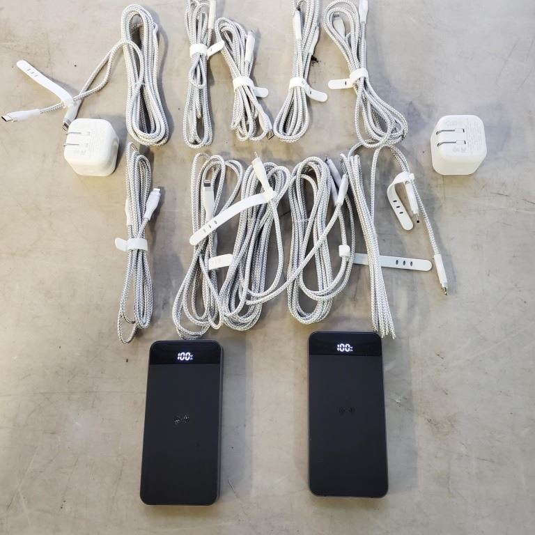10 AS NEW APPLE IPHONE TO TYPE C PHONE CHARGE CORDS 2 WALL CHARGERS AND 2 WIRELESS PORTABLE POWER BANKS