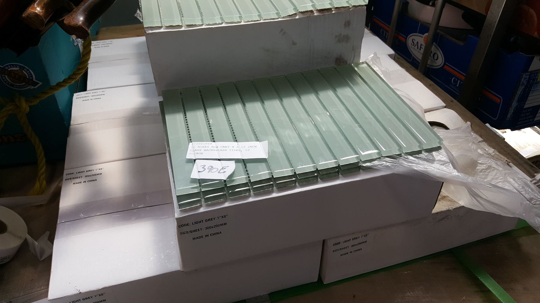 10 BOXES NEW GREY 8 X 12 INCH GLASS BACKSPLASH TILES, 10 PC/BOX