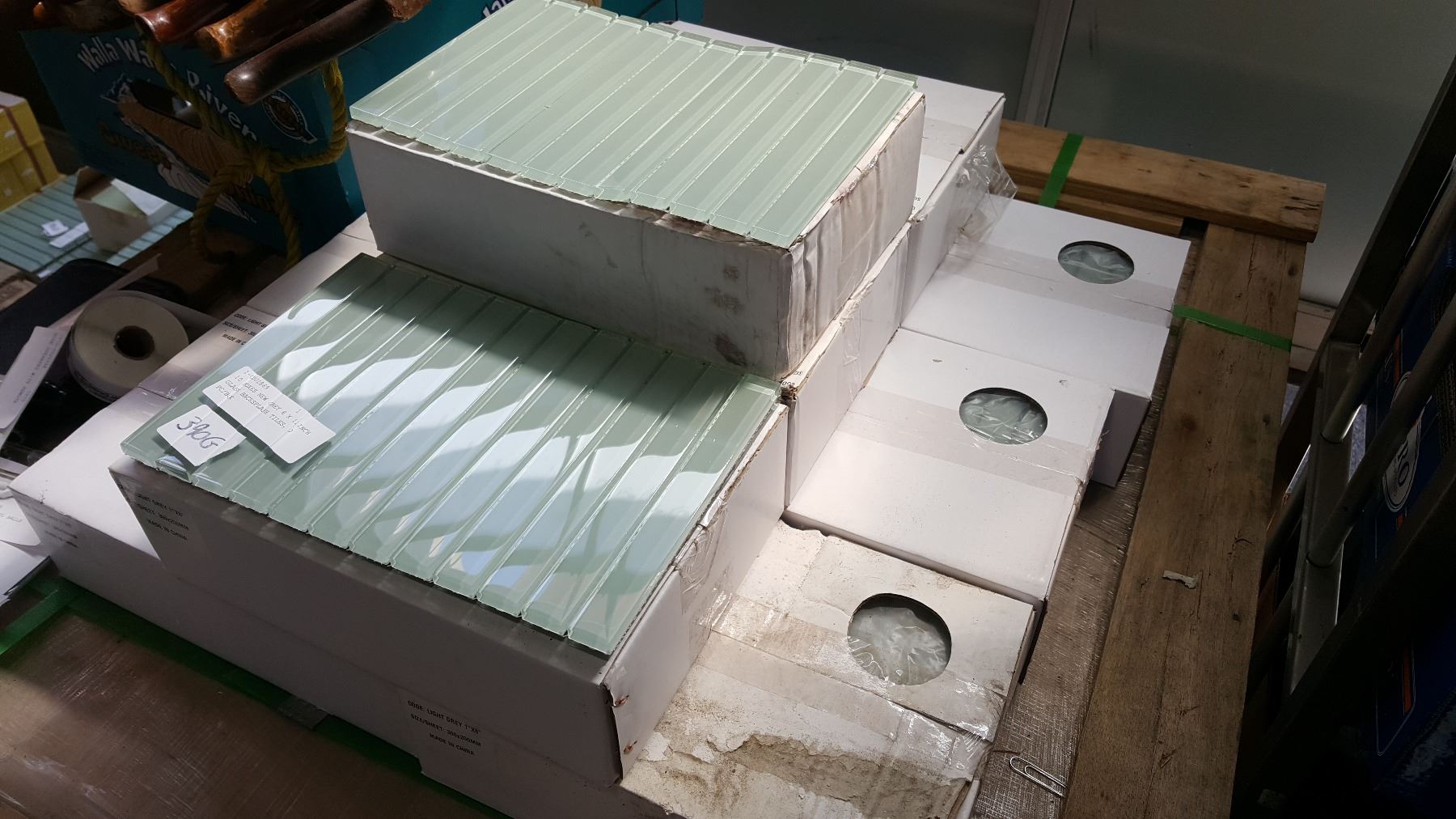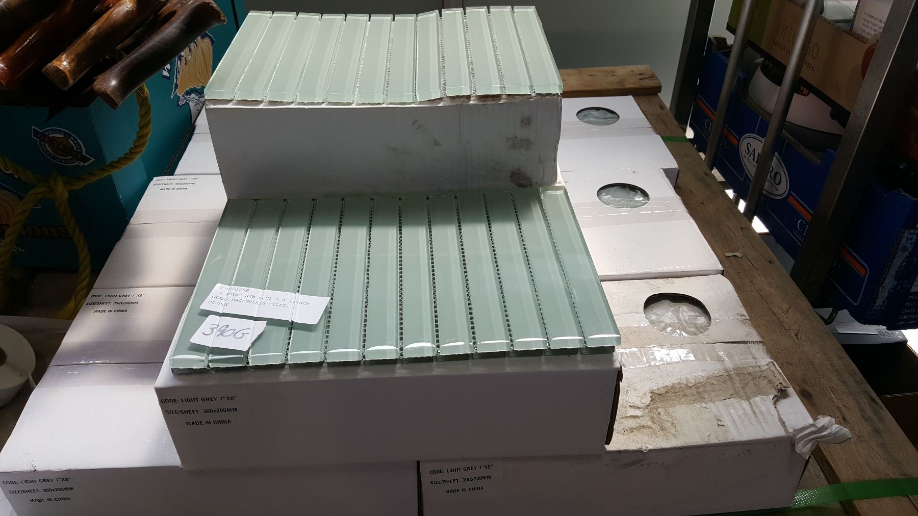 10 BOXES NEW GREY 8 X 12 INCH GLASS BACKSPLASH TILES, 10 PC/BOX