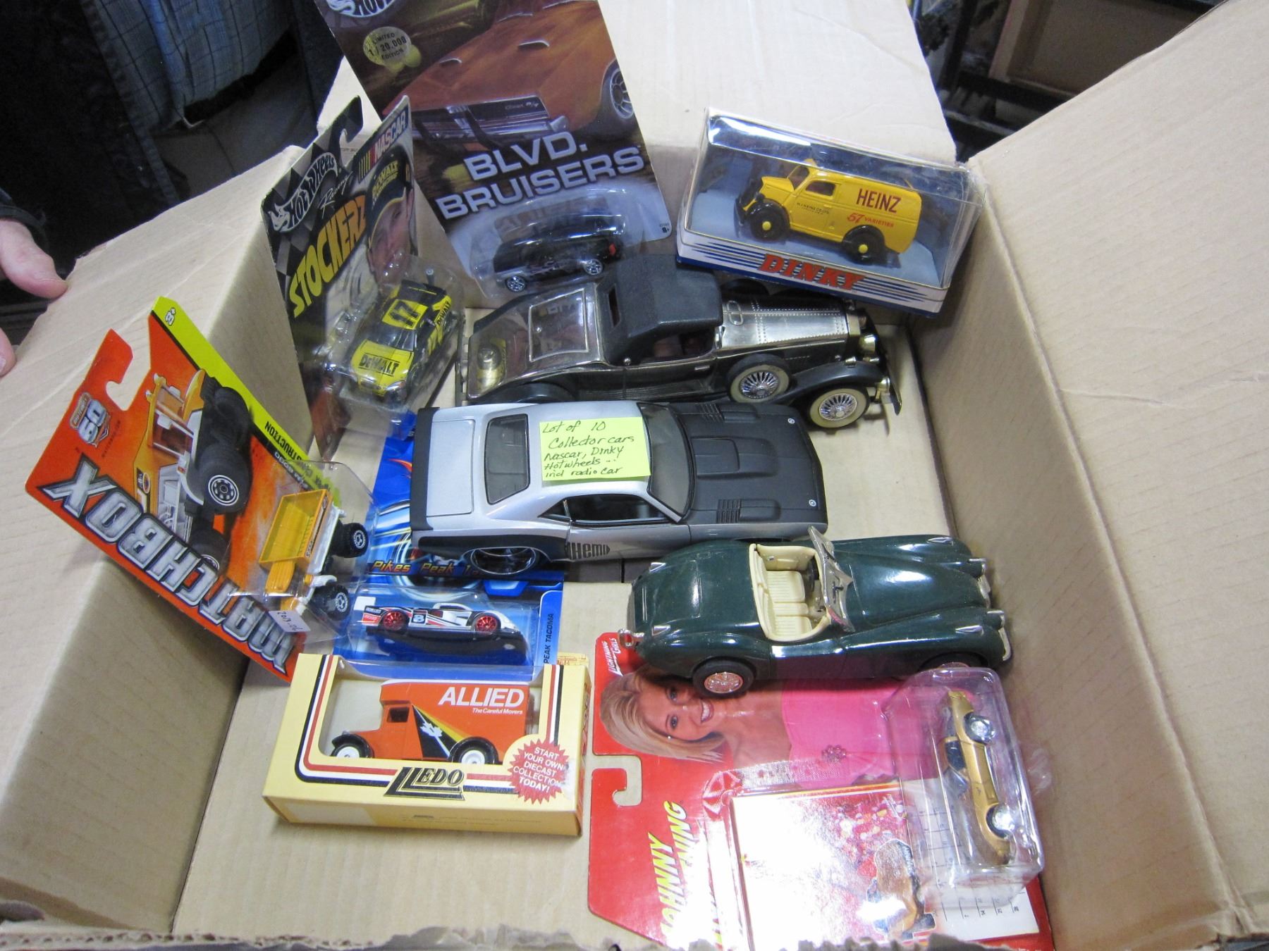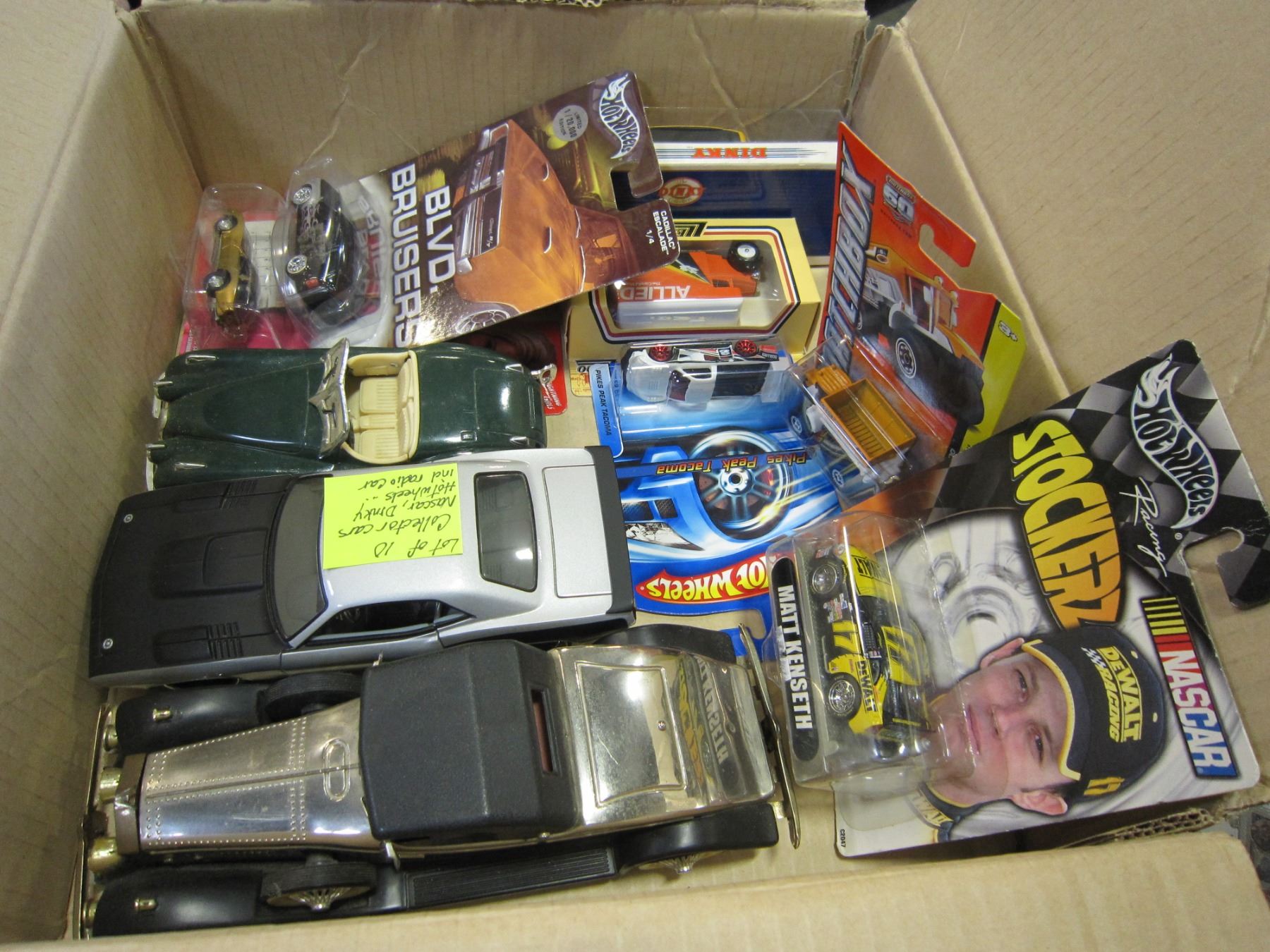 10 COLLECTOR CARS, NASCAR, JOHNNY LIGHTNING, HOTWHEELS, DINKY, MANY UNOPENED AND RADIO CAR