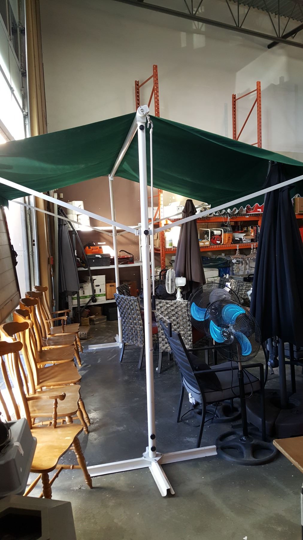 10 FOOT WHITE METAL FRAME GREEN CANVAS AWNING