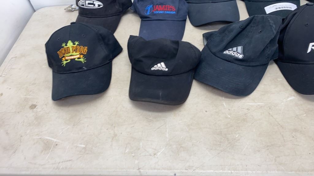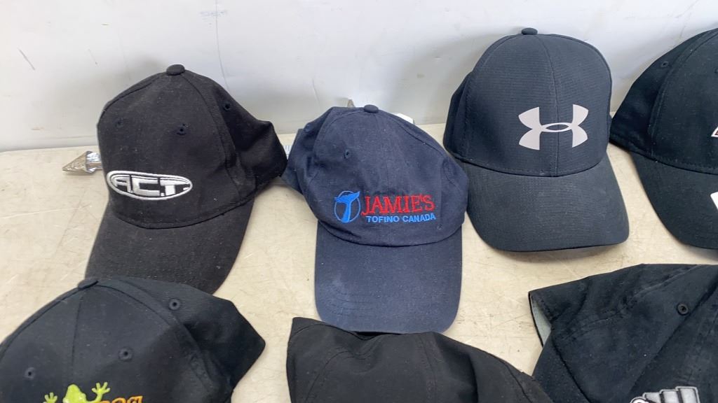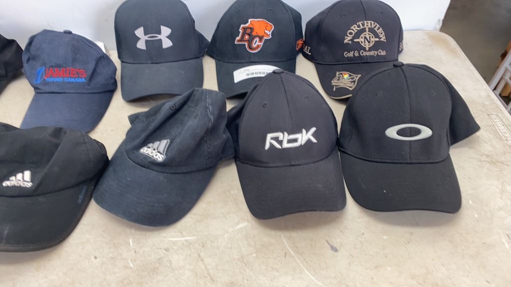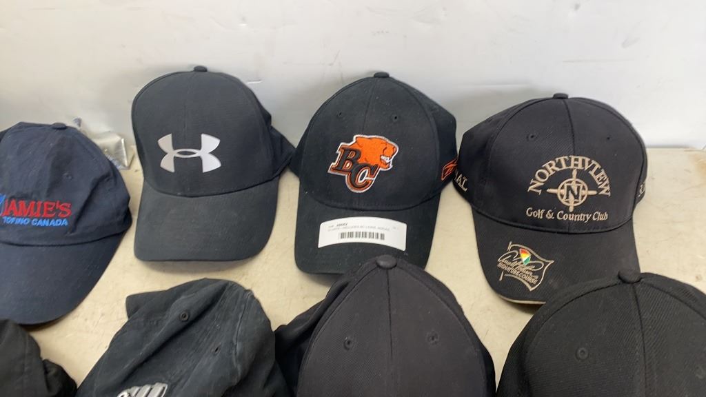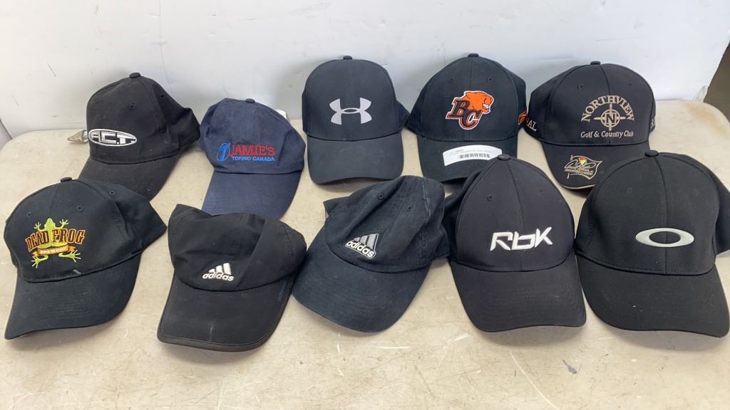 10 HATS - INCLUDES BC LIONS, ADIDAS, DEAD FROG BREWERY, UNDERARMOR AND MORE