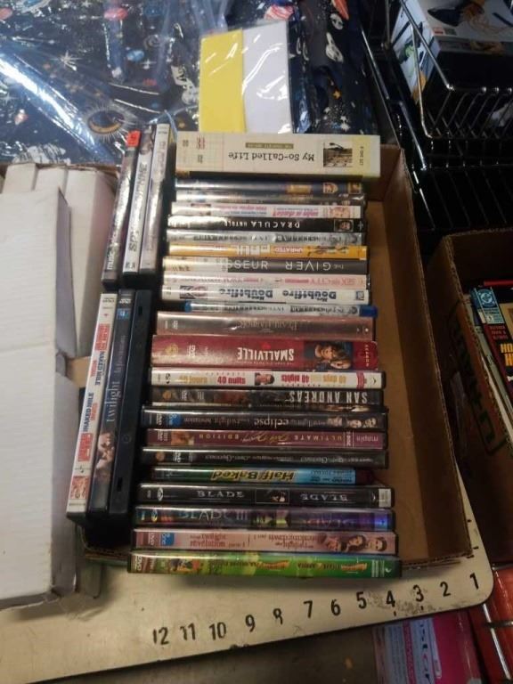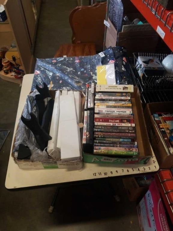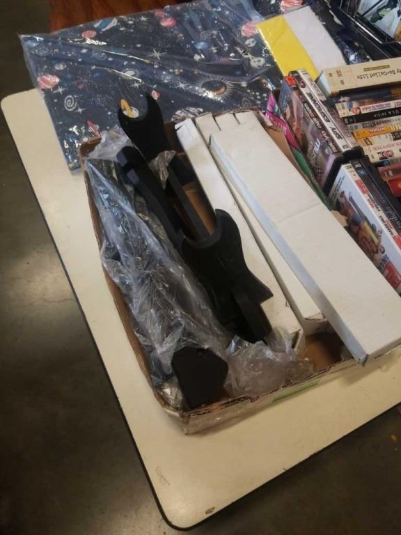 10 NEW GIFT BAGS WITH 10 NEW SWORD STANDS AND TRAY OF DVDS