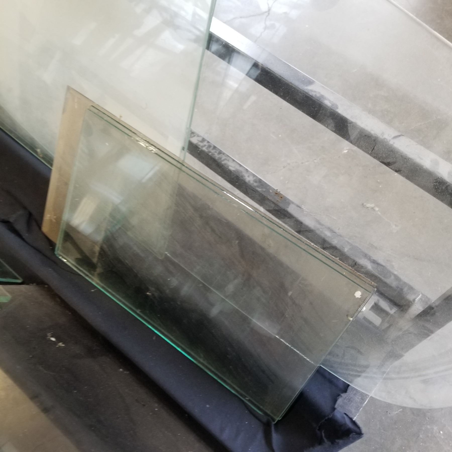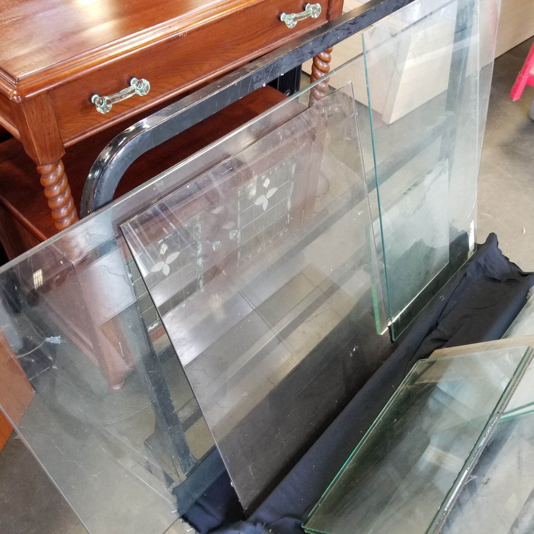 10 VARIOUS PIECES OF GLASS AND BEVELED GLASS PANELS