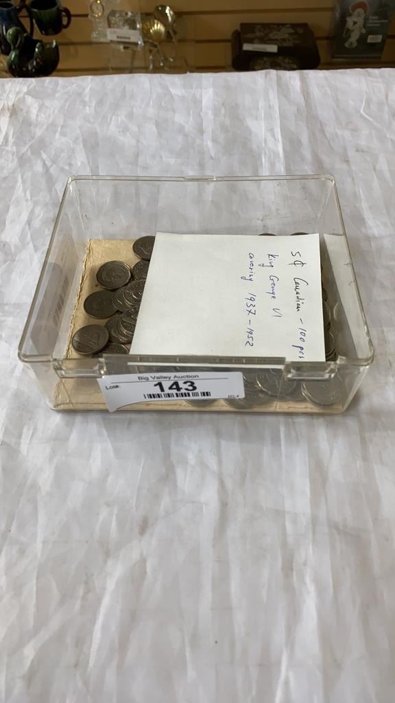 100 Canadian five cent coins King George the eighth 1937 to 1952