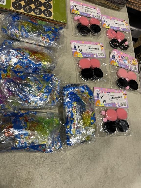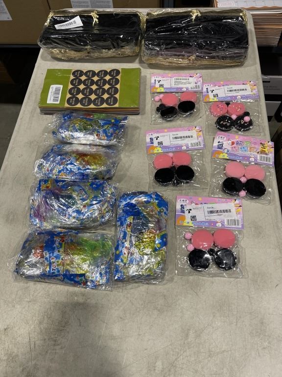 100 NEW 6X5 INCH BLACK VELVET GIFT BAGS AND ASSORTED NEW KIDS GOODY BAG PARTY FAVORS