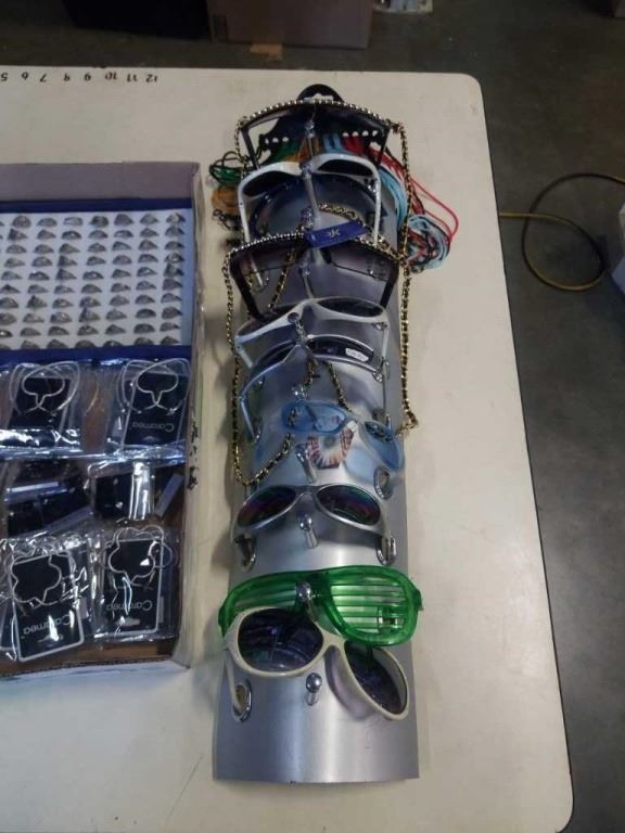 100 NEW RINGS WITH 10 PAIRS OF SUNGLASSES AND 36 PAIRS OF EARRINGS