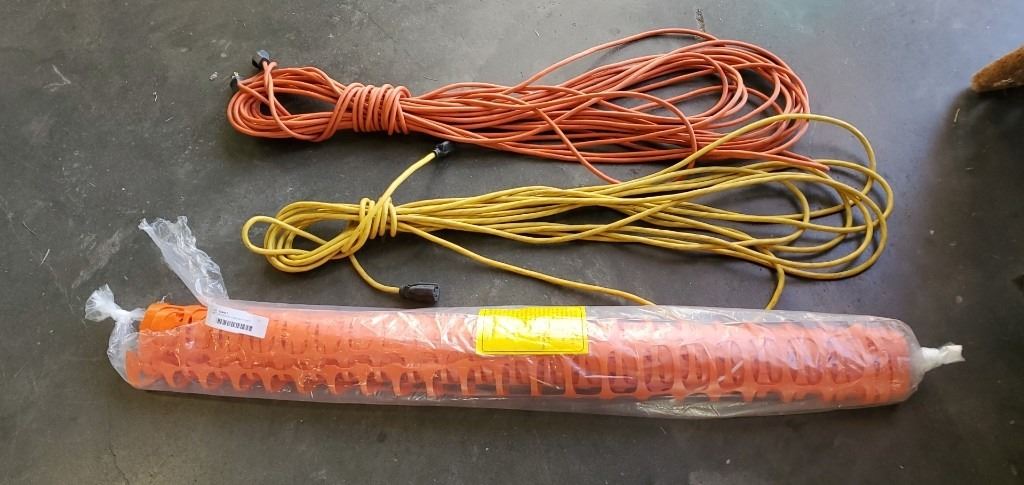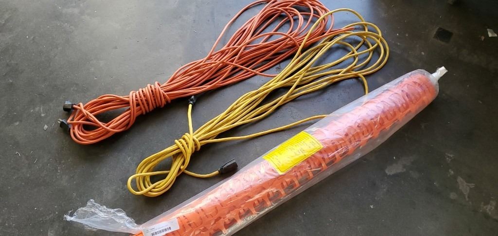 100FT EXTENTION CORD WITH 50FT EXTENTION CORD AND 30FT PLASTIC FENCING