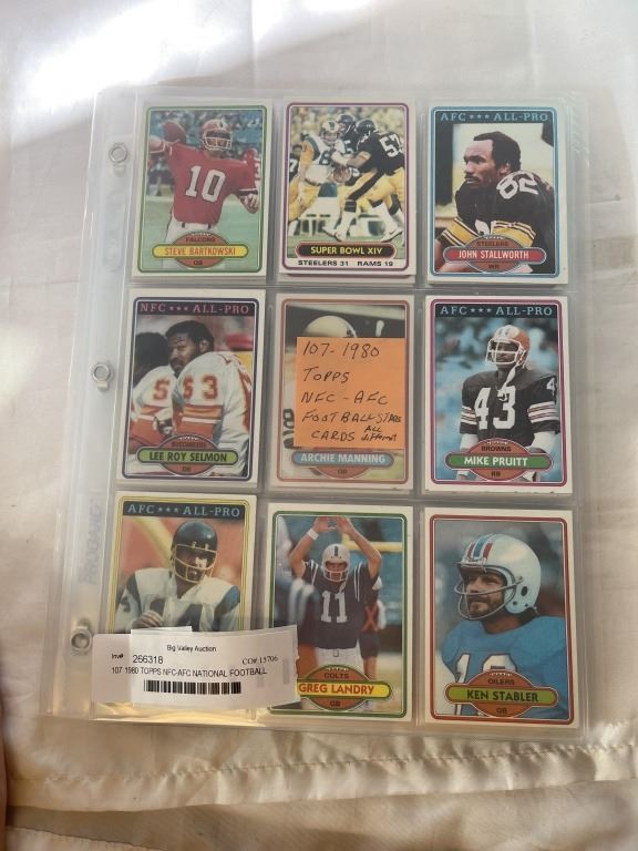 107 1980 TOPPS NFC-AFC NATIONAL FOOTBALL CARDS, ROOKIES, ALL DIFFERENT