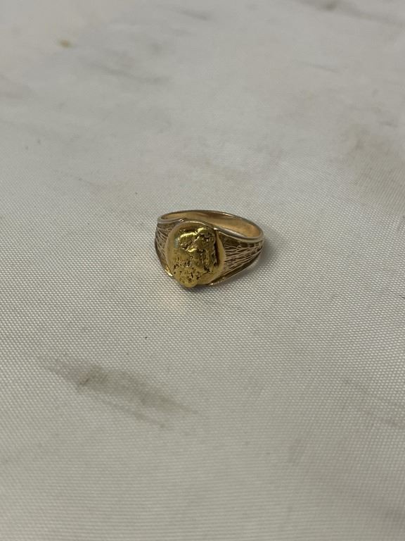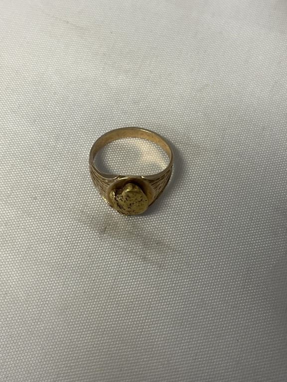 10K GOLD RING W/ GOLD NUGGET, 6 GRAMS