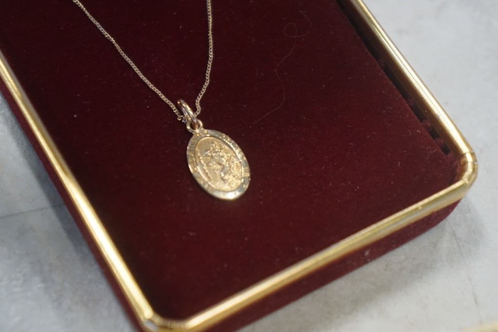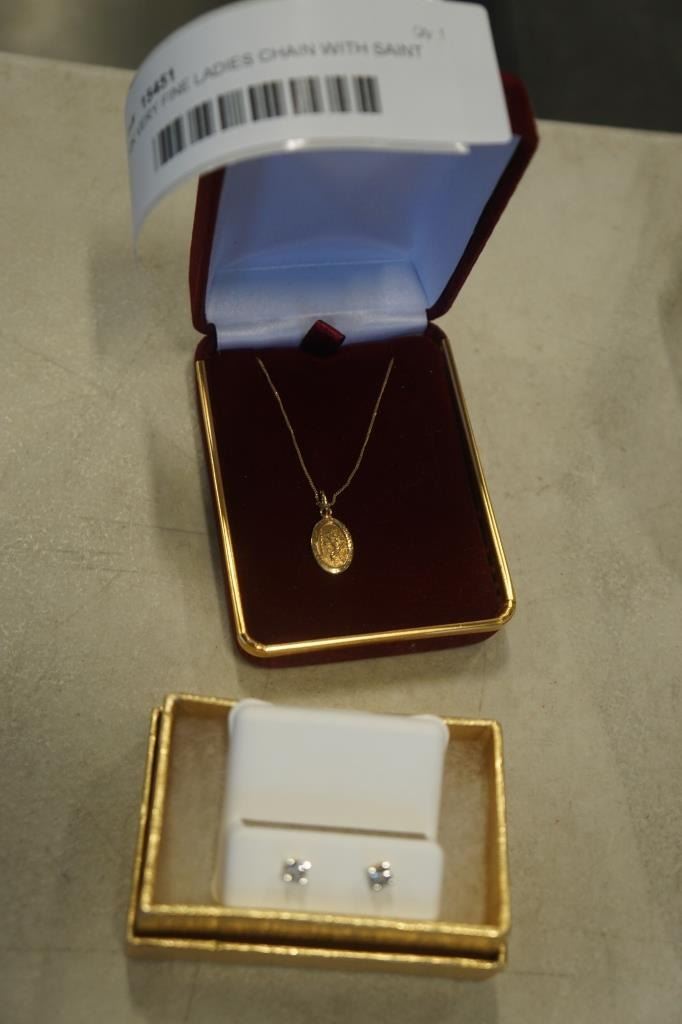 10K VERY FINE LADIES CHAIN WITH SAINT CHRISTOPHER PENDENT AND 925 STUD EARRINGS