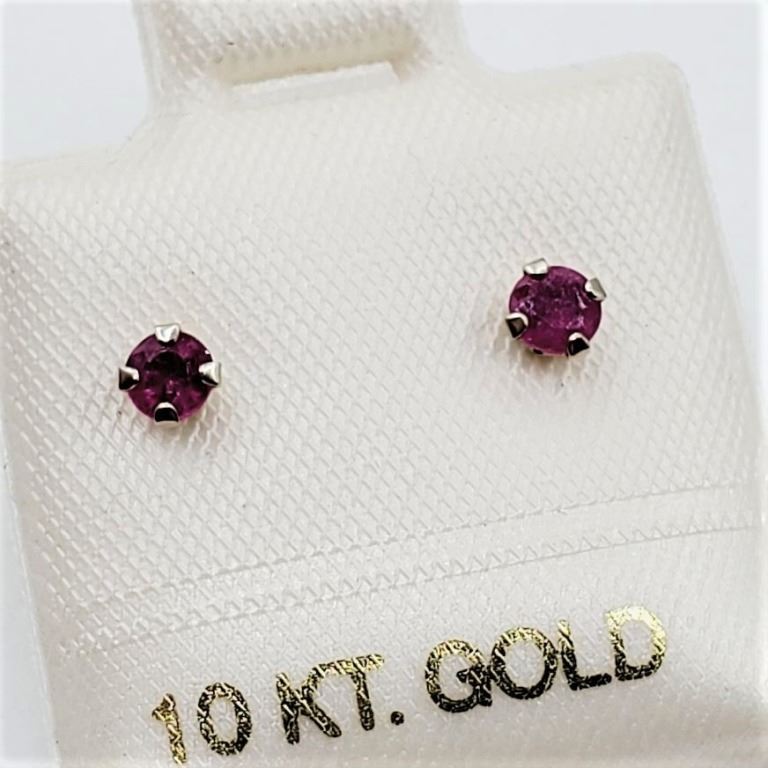 10KT. WHITE GOLD 3MM NATURAL ENHANCED RUBY STUD EARRINGS, 0.28CTS, W/A $495.00