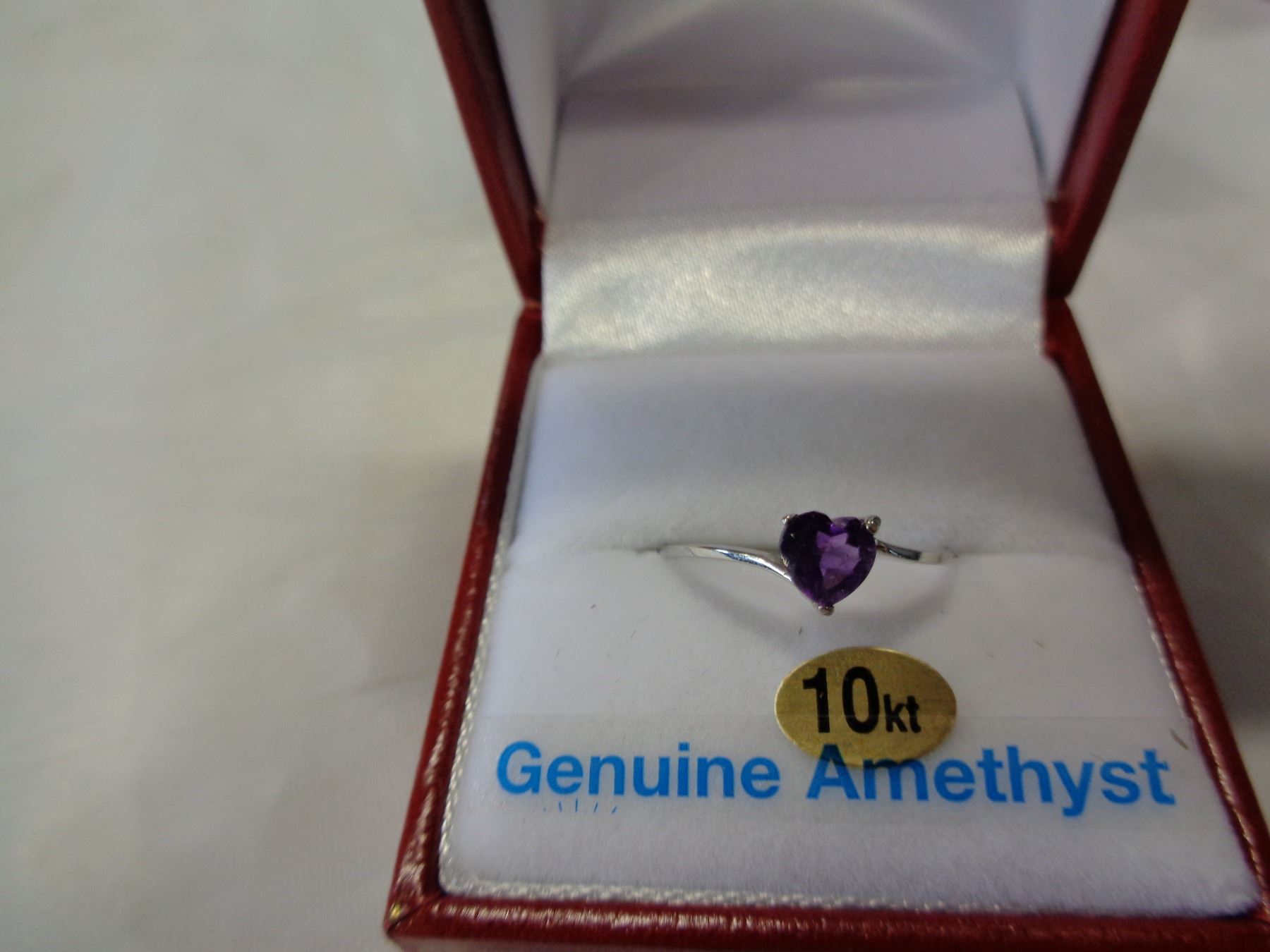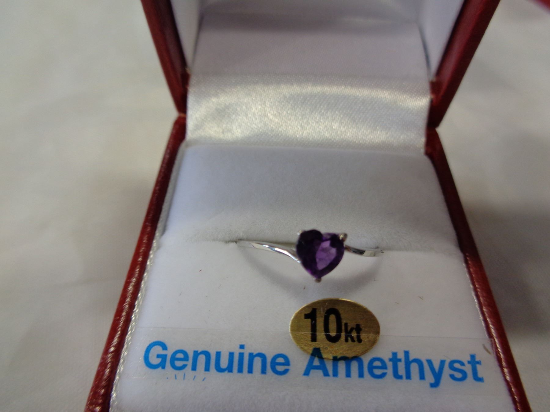 10KT WHITE GOLD 5MM GENUINE AMETHYST HEART RING SIZE 6.5 - RETAIL $900