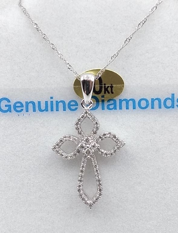 10KT WHITE GOLD DIAMOND CROSS PENDANT W/ 18IN CHAIN W/ APPRAISAL $2095 - 66 DIAMONDS (.20CT)