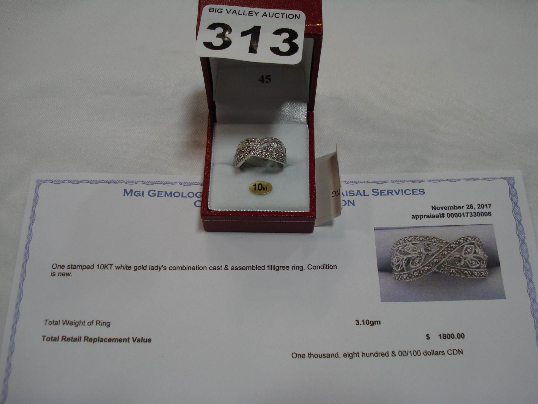 10KT WHITE GOLD FILIGREE RING WITH APPRAISEL $1800.00