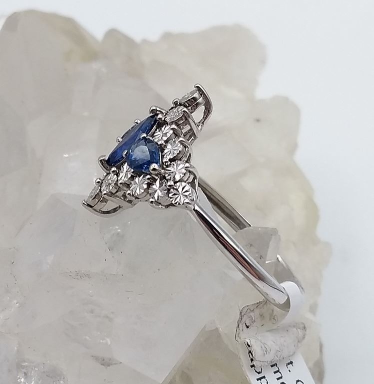 10KT WHITE GOLD GENUINE BLUE SAPPHIRE AND DIAMOND RING W/ APPRAISAL $1480 - SIZE 6.75, 0.6CT SAPPHIR