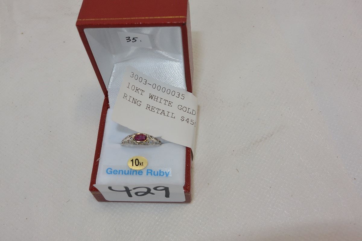 10KT WHITE GOLD GENUINE RUBY RING RETAIL $450