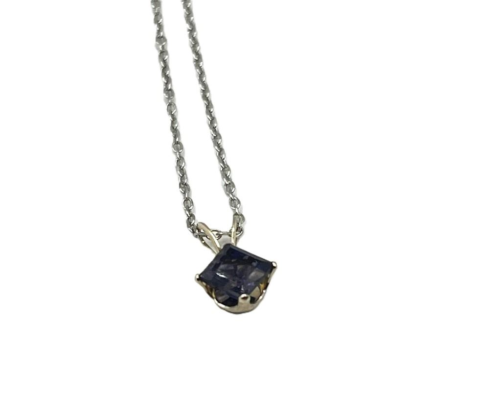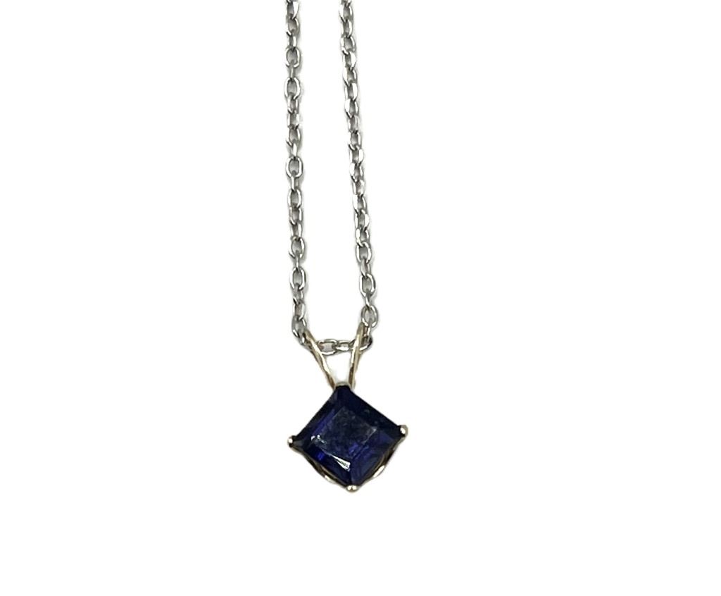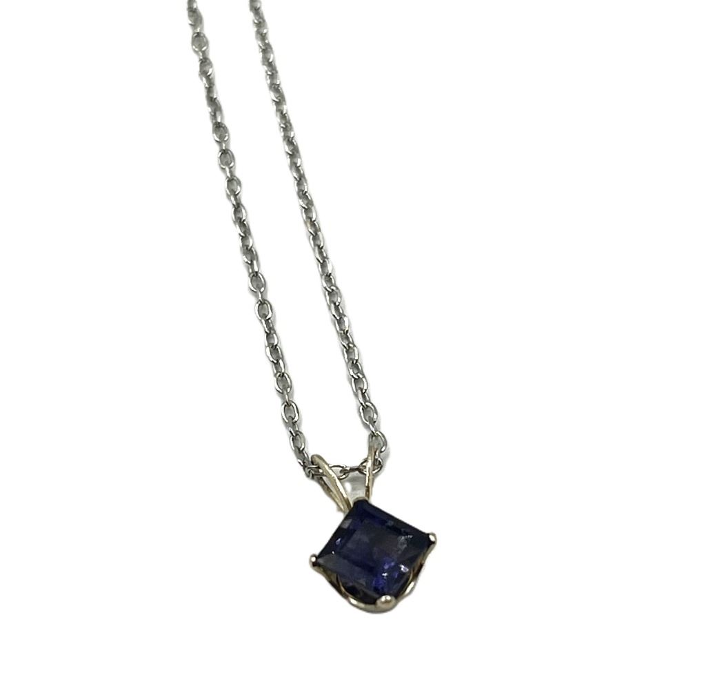 10KT WHITE GOLD NATURAL IOLITE PENDANT WITH STERLING SILVER CHAIN, RETAIL $350.00.