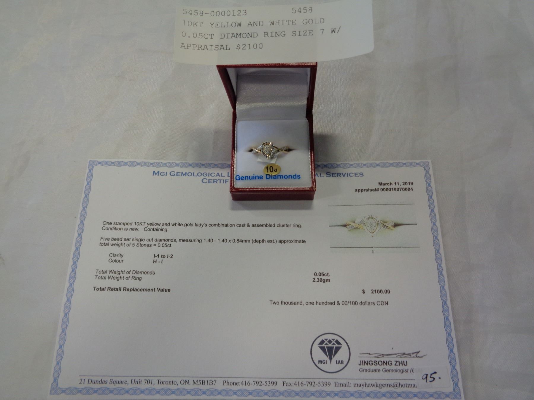 10KT YELLOW AND WHITE GOLD 0.05CT DIAMOND RING SIZE 7 W/ APPRAISAL $2100