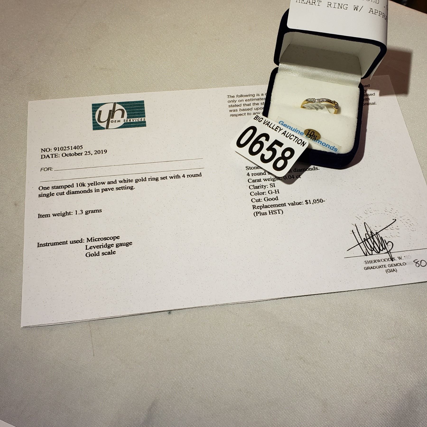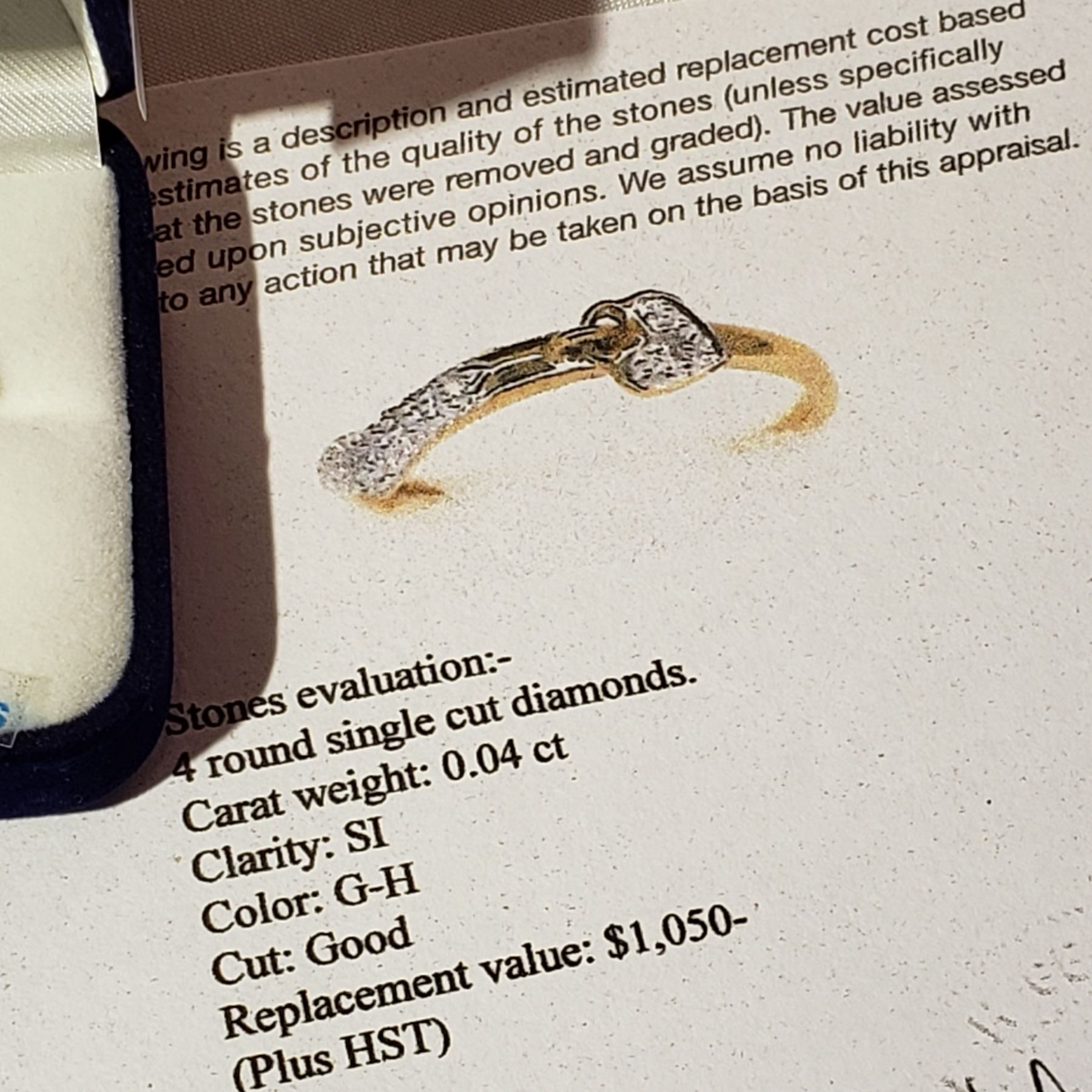 10KT YELLOW GOLD .04CT DIAMOND HEART RING W/ APPRAISAL $1050