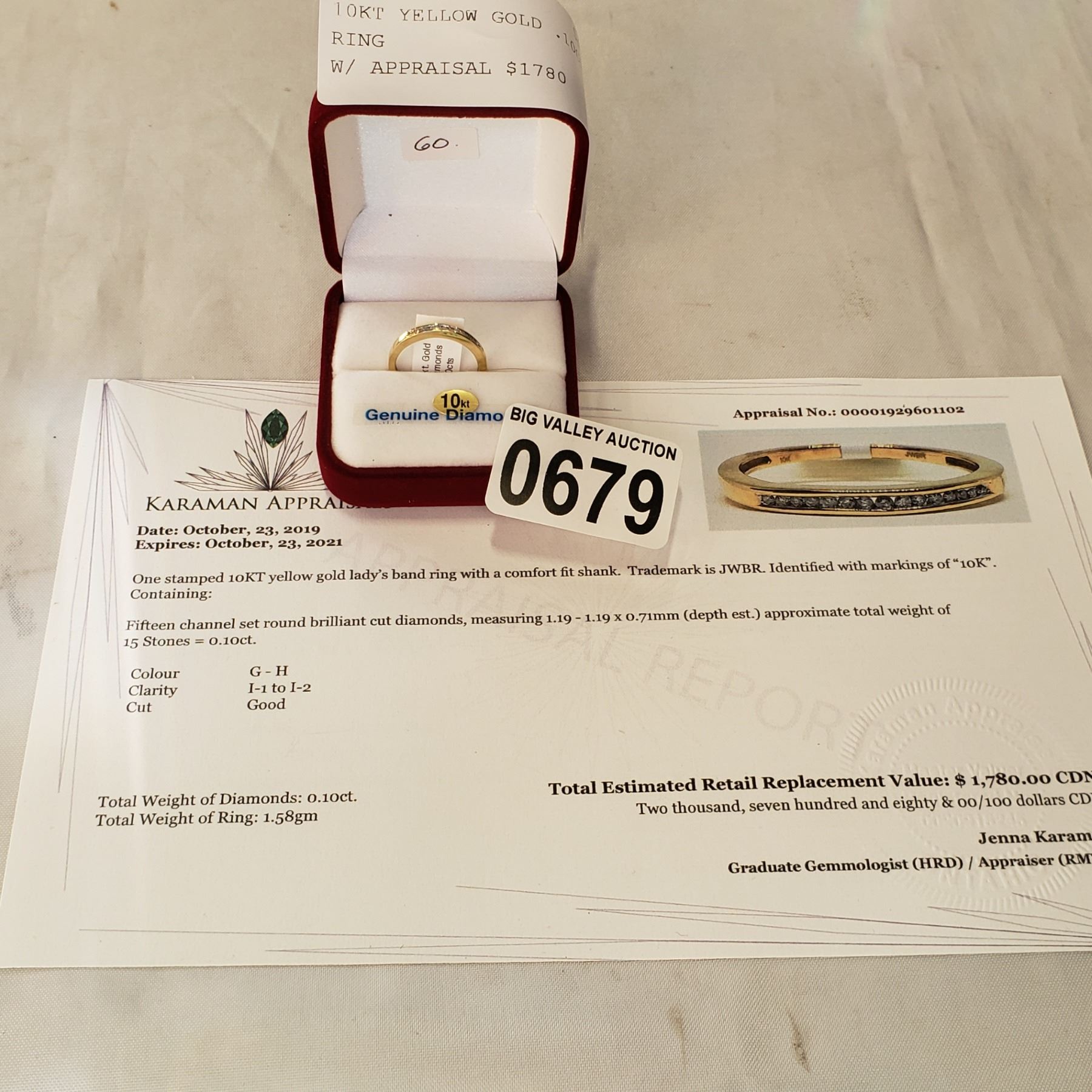 10KT YELLOW GOLD .10CT DIAMOND RING W/ APPRAISAL $1780