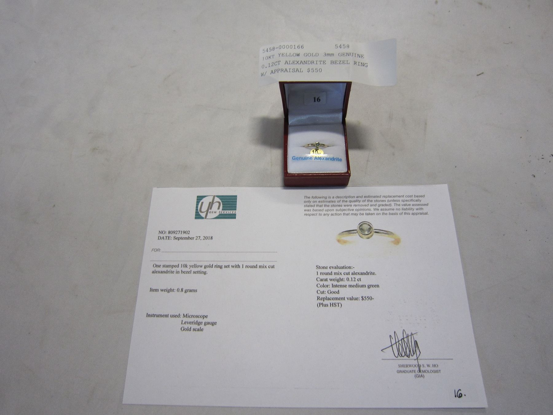 10KT YELLOW GOLD 3mm GENUINE 0.12CT ALEXANDRITE BEZEL RING W/ APPRAISAL $550