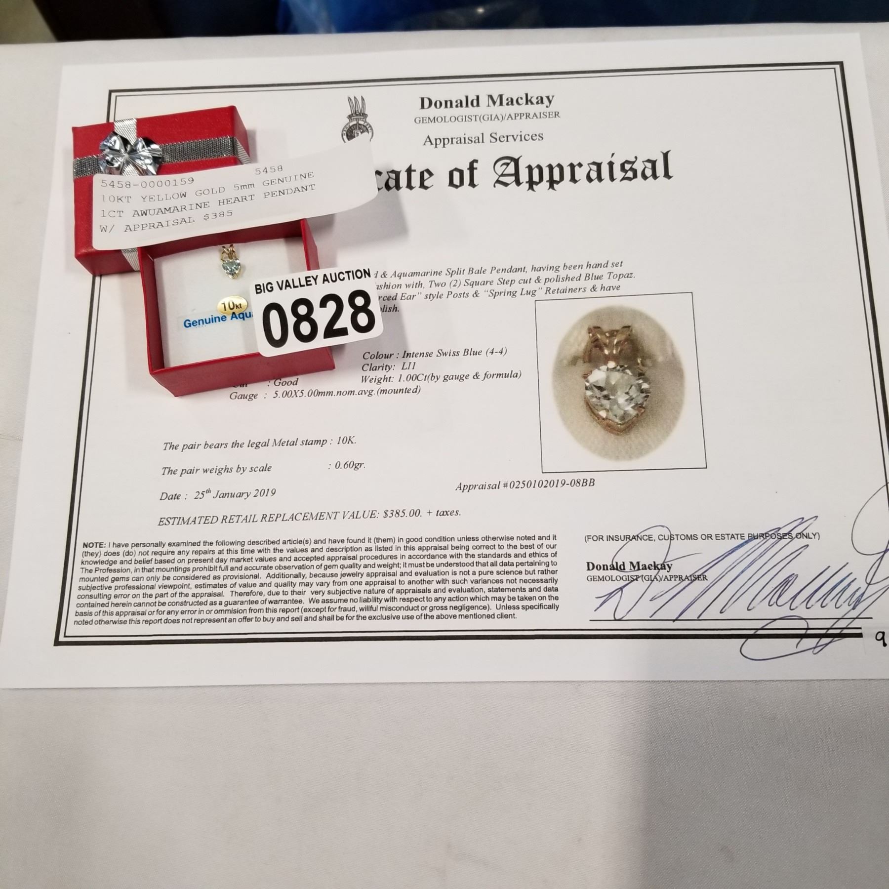 10KT YELLOW GOLD 5mm GENUINE 1CT AQUAMARINE HEART PENDANT W/ APPRAISAL $385