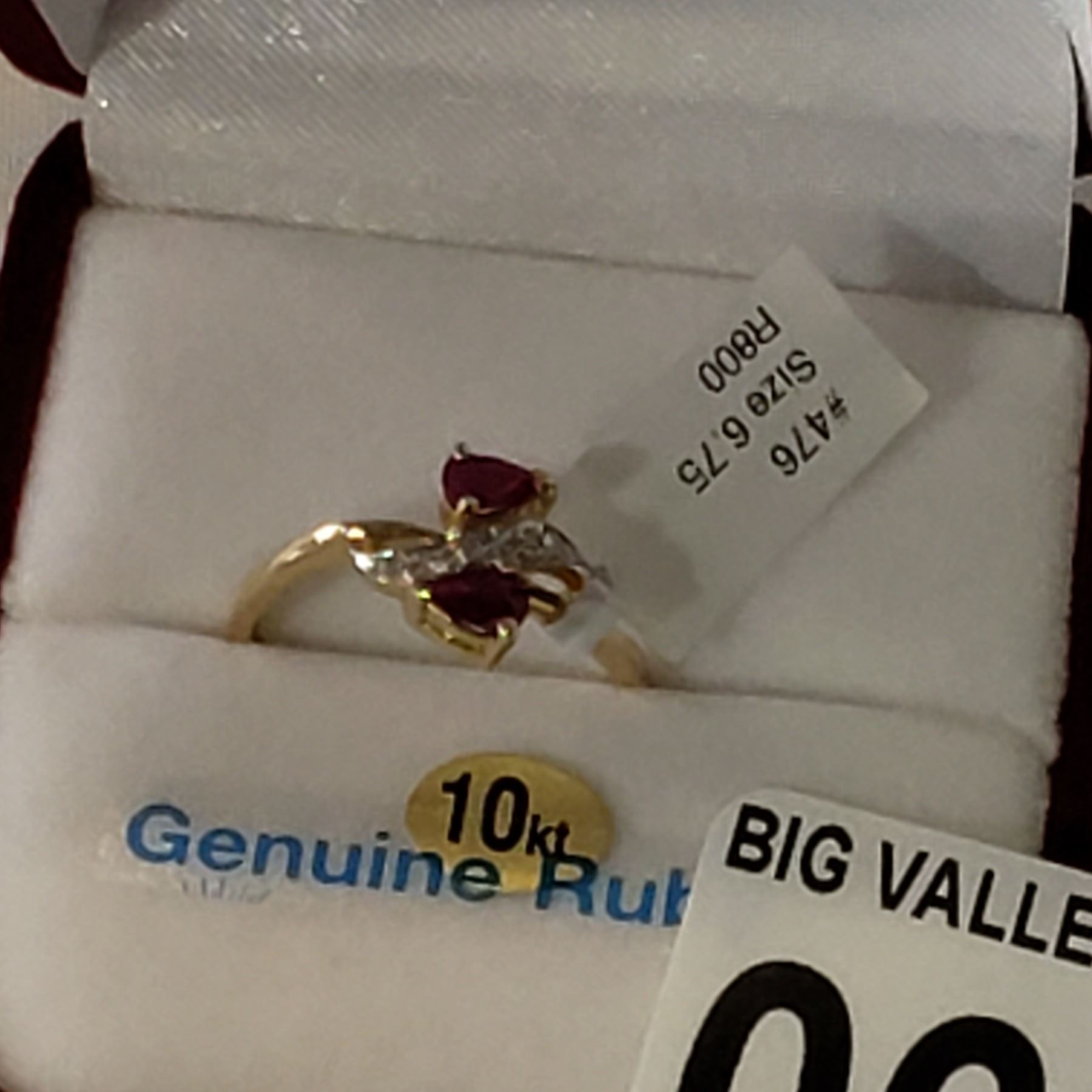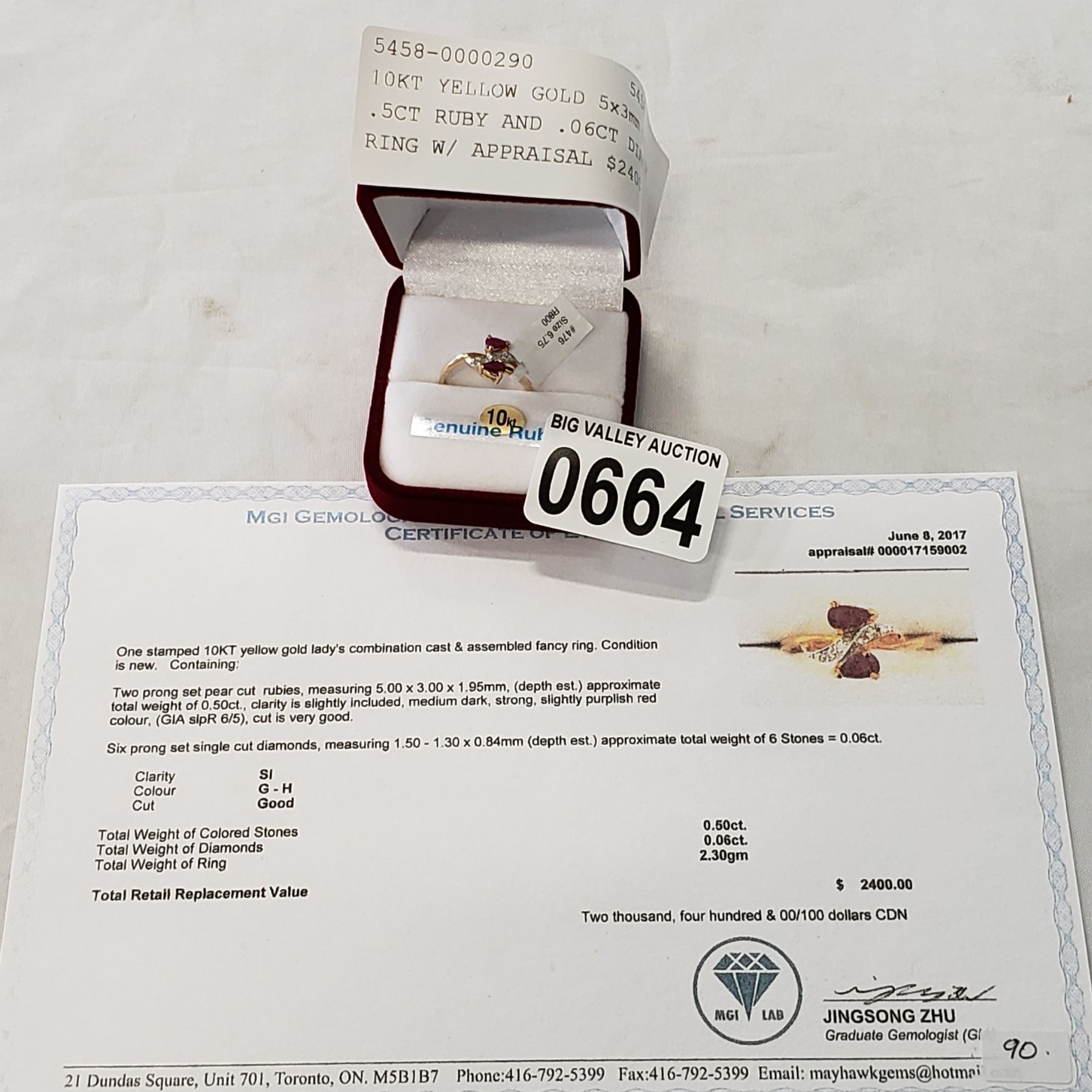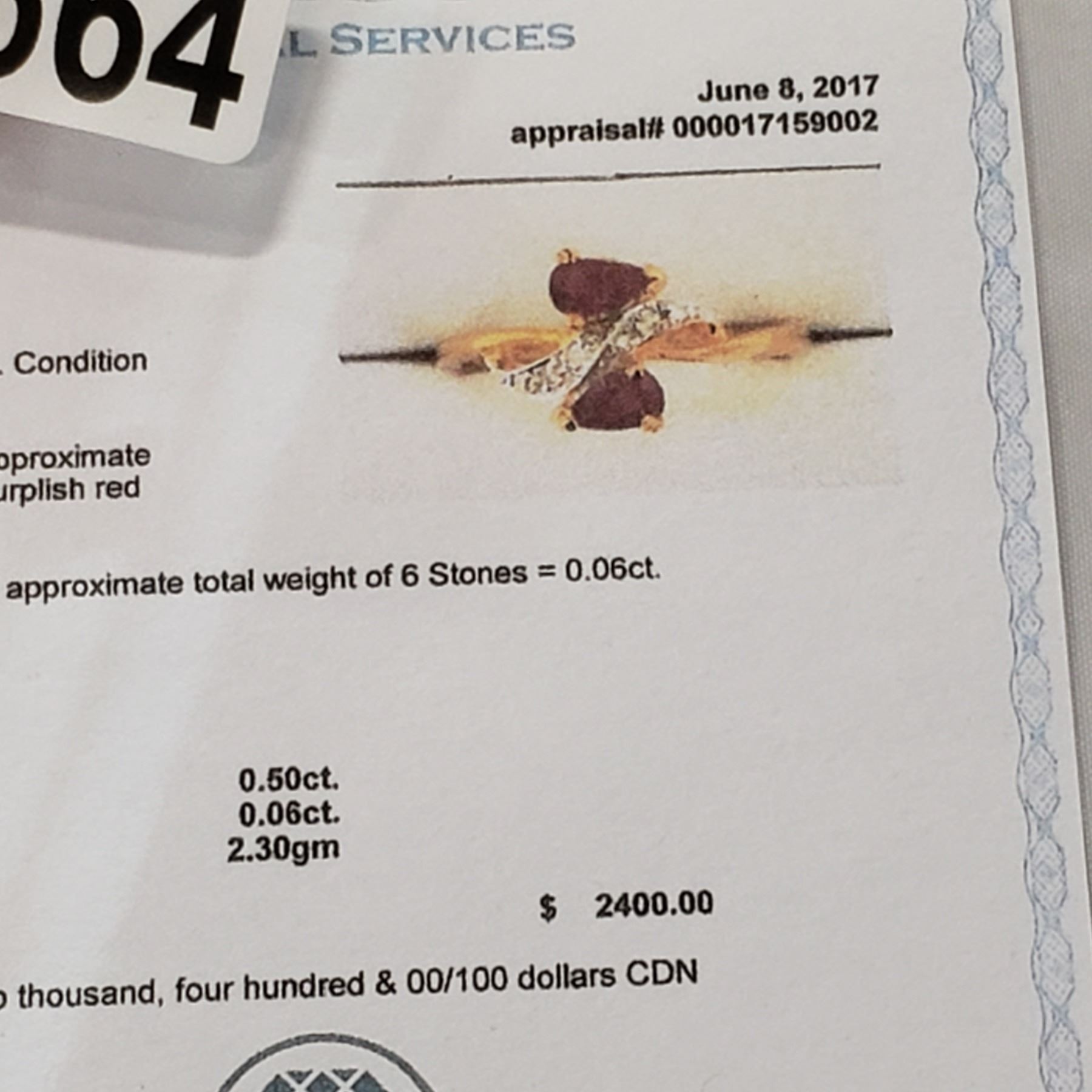 10KT YELLOW GOLD 5x3mm GENUINE .5CT RUBY AND .06CT DIAMOND RING W/ APPRAISAL $2400