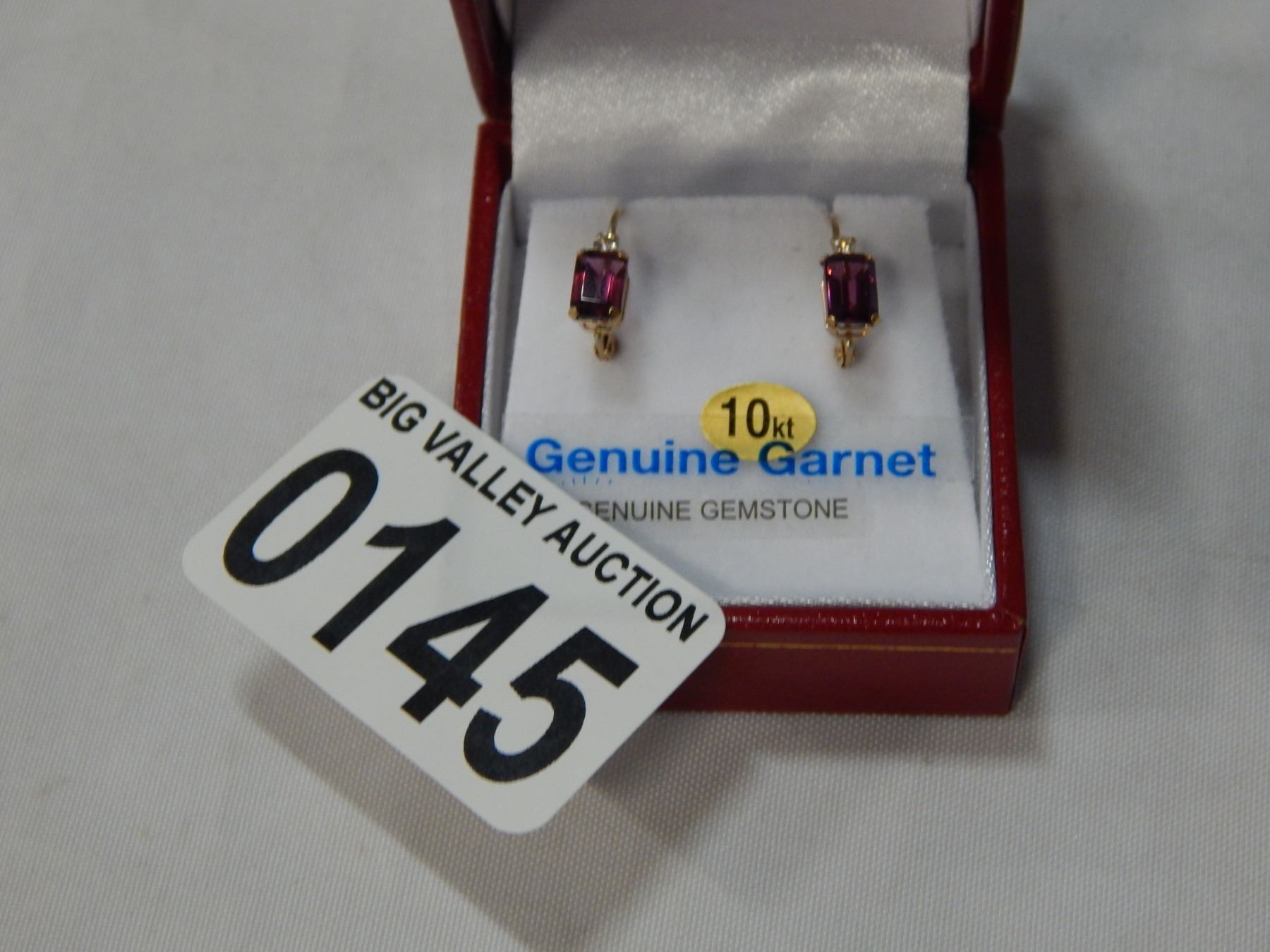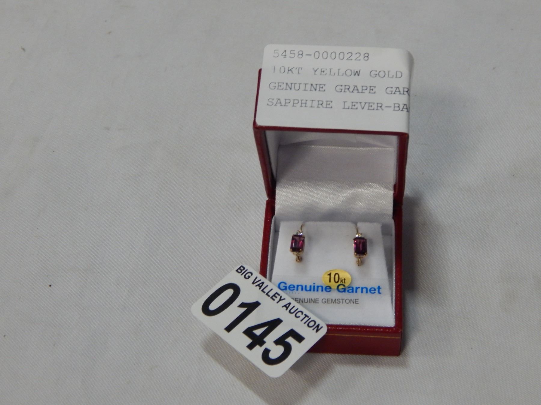 10KT YELLOW GOLD 6 x 4 mm GENUINE GRAPE GARNET AND WHITE SAPPHIRE LEVER-BACK EARRINGS - RETAIL $750