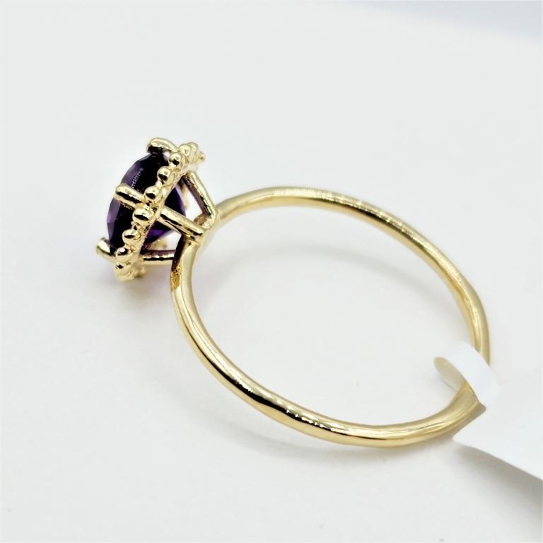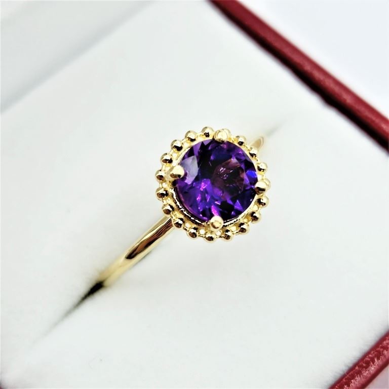 10KT. YELLOW GOLD 6MM NATURAL AMETHYST MILGRAIN RING, RETAIL $1200.00, 1CTS, SIZE 7