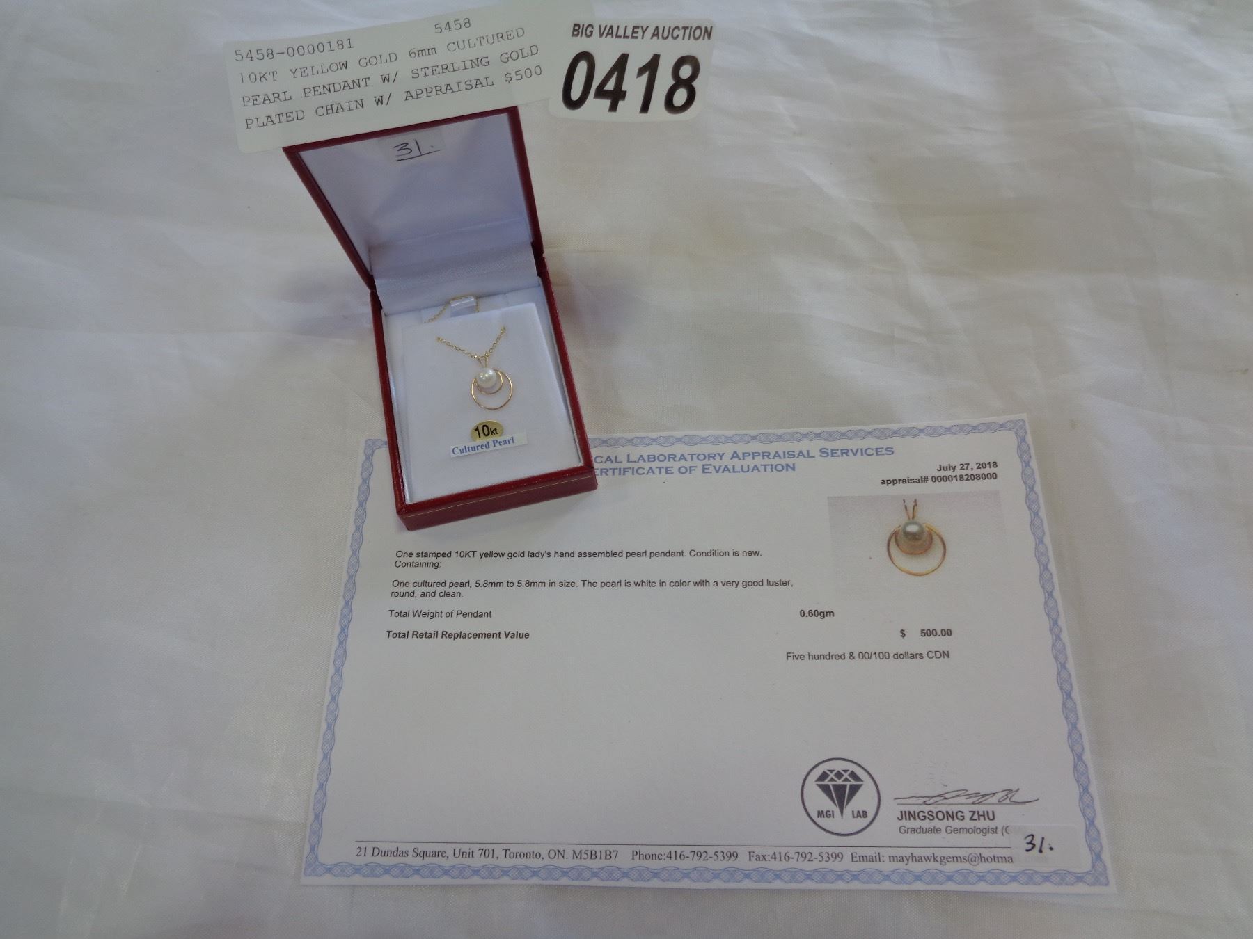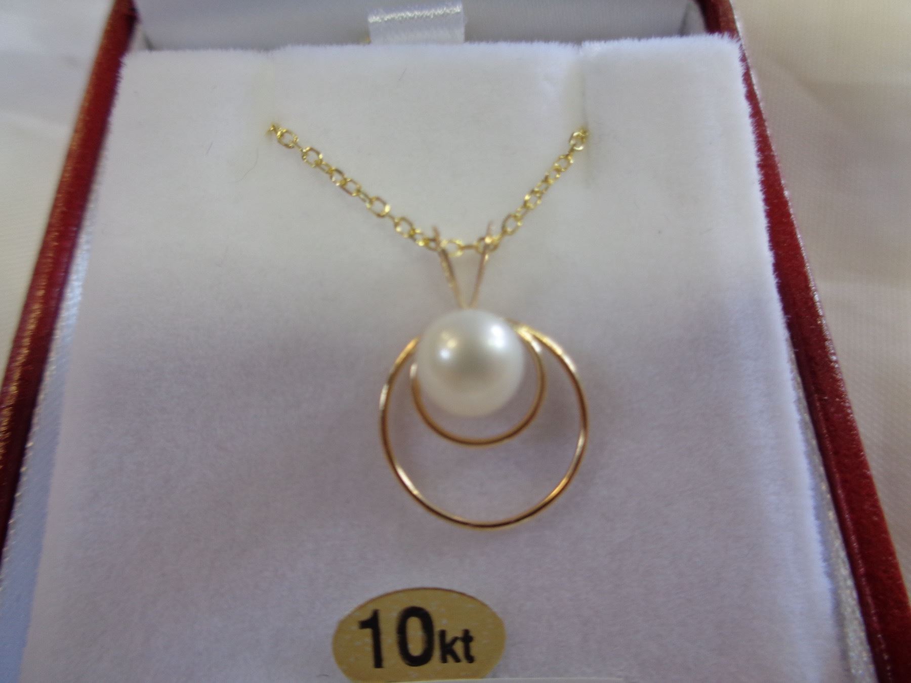 10KT YELLOW GOLD 6mm CULTURED PEARL PENDANT W/ STERLING GOLD PLATED CHAIN W/ APPRAISAL $500