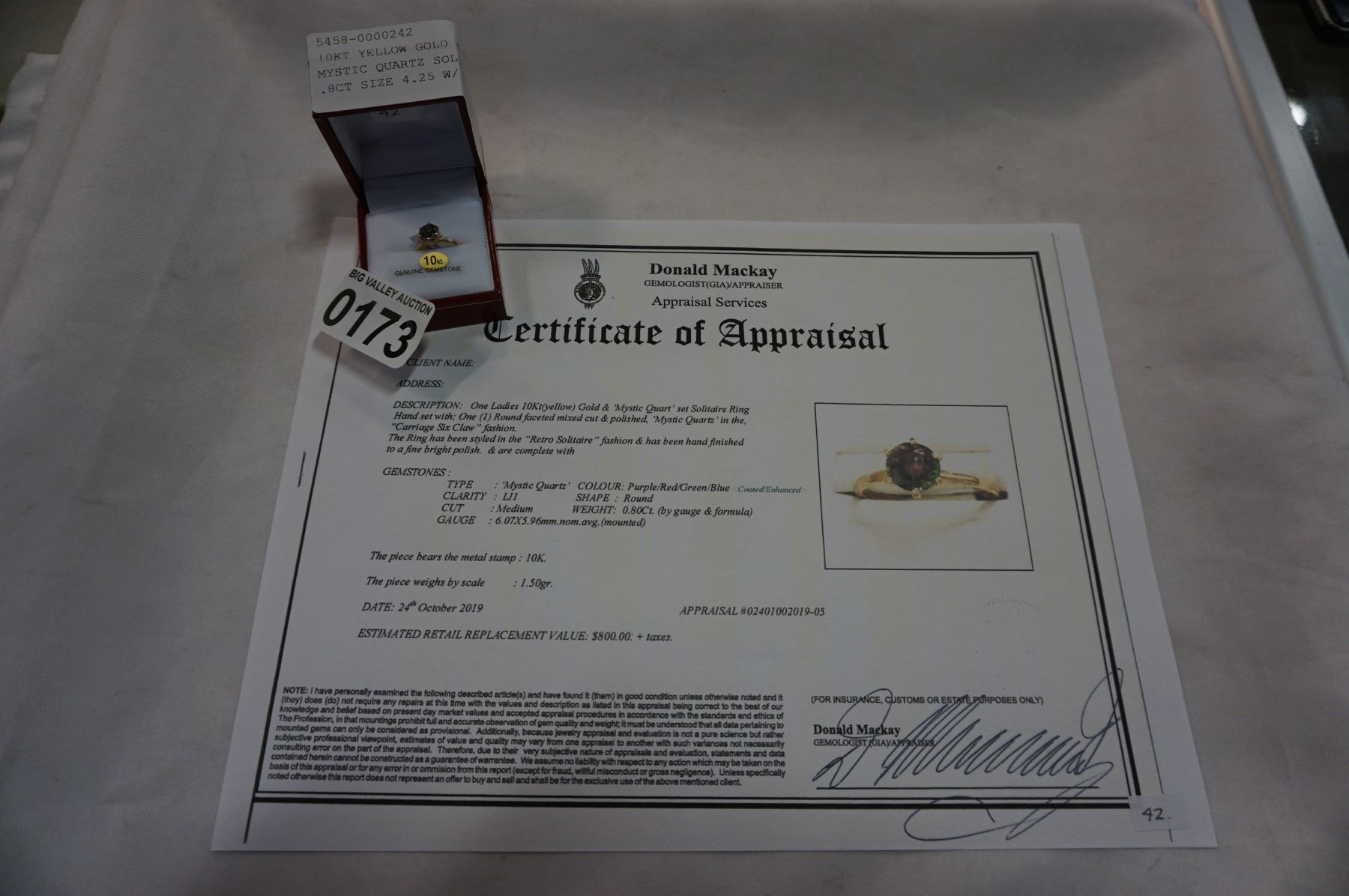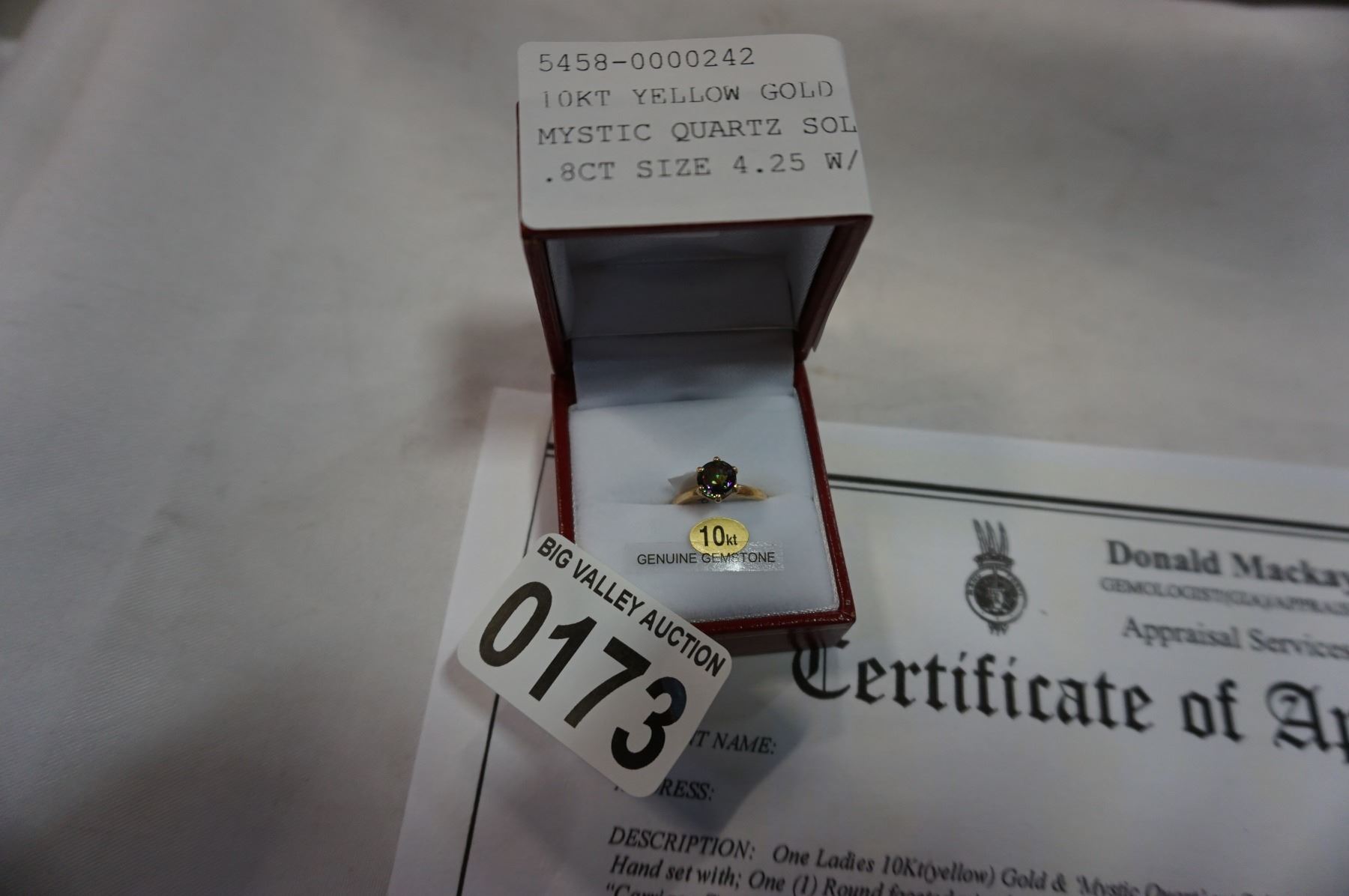 10KT YELLOW GOLD 6mm GENUINE MYSTIC QUARTZ SOLITAIRE RING .8CT SIZE 4.25 W/ APPRAISAL $800