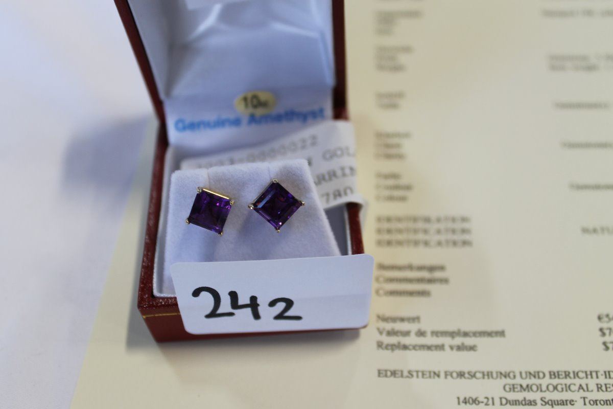 10KT YELLOW GOLD AND GENUINE AMETHYST EARRINGS WITH