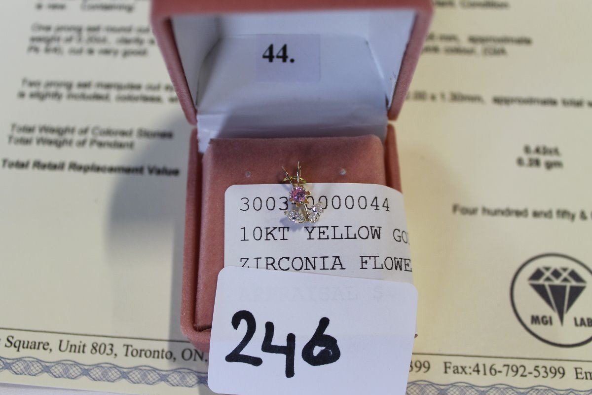 10KT YELLOW GOLD CUBIC ZIRCONIA FLOWER PENDANT WITH