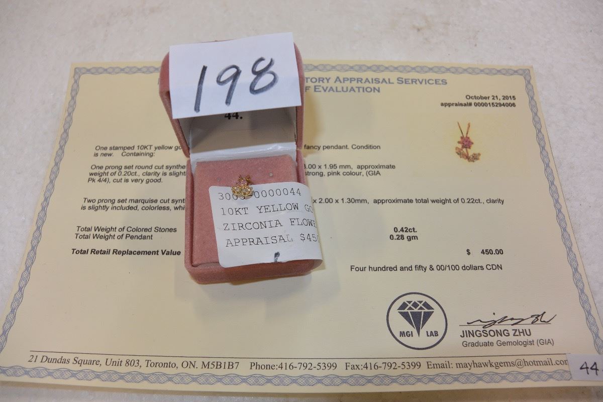10KT YELLOW GOLD CUBIC ZIRCONIA FLOWER PENDANT WITH