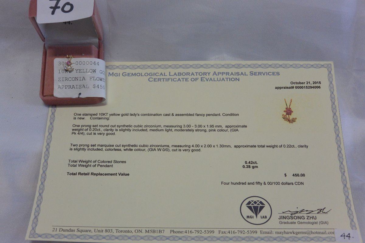 10KT YELLOW GOLD CUBIC ZIRCONIA FLOWER PENDANT WITH