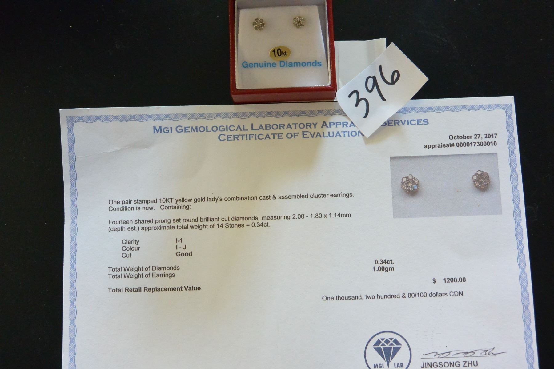 10KT YELLOW GOLD DIAMOND CLUSTER EARRINGS WITH APPRAISEL $1200.00