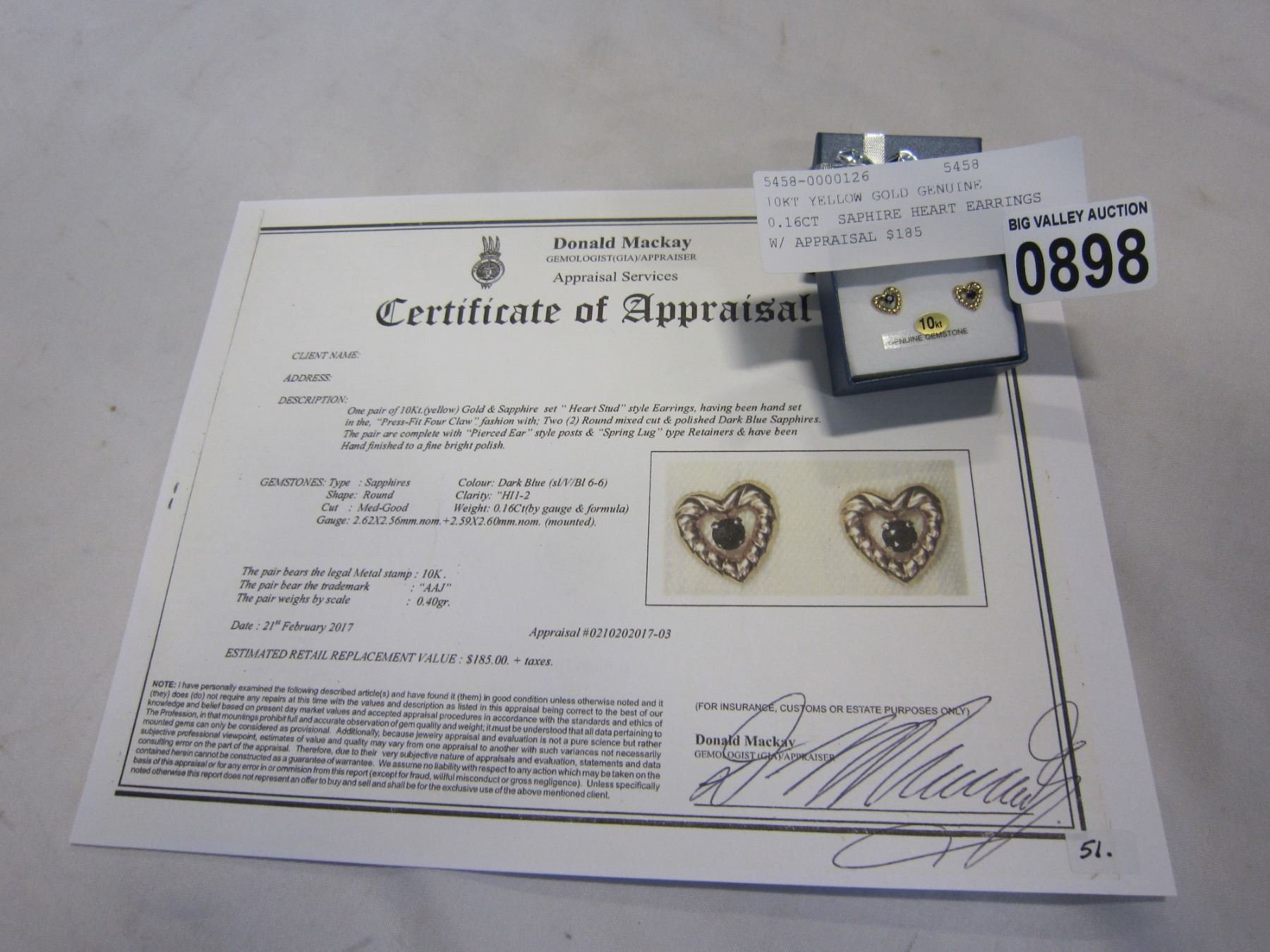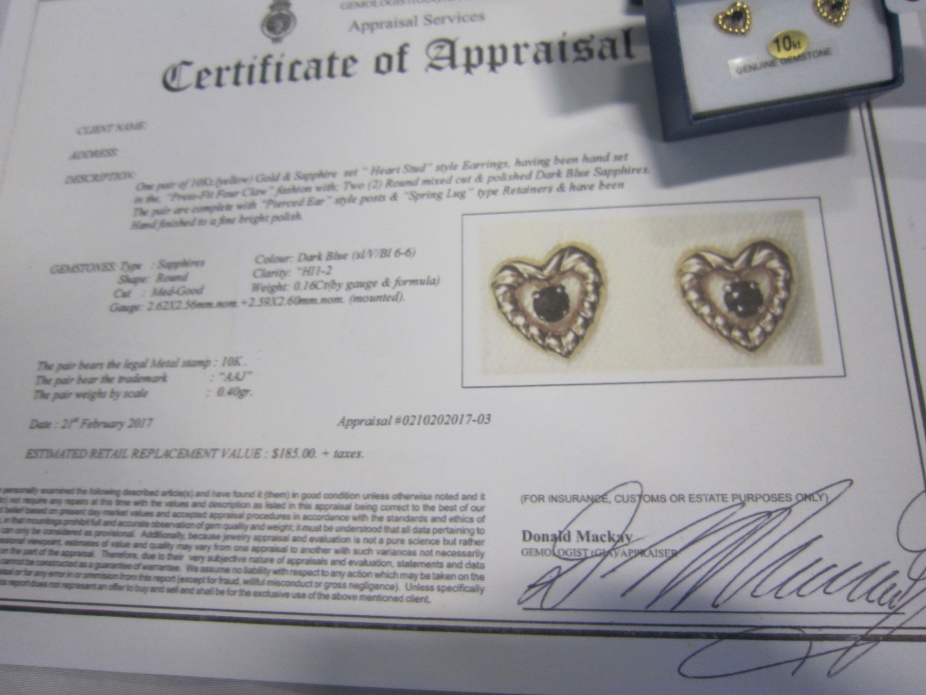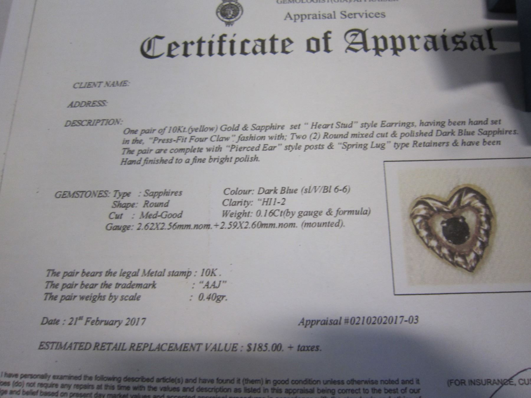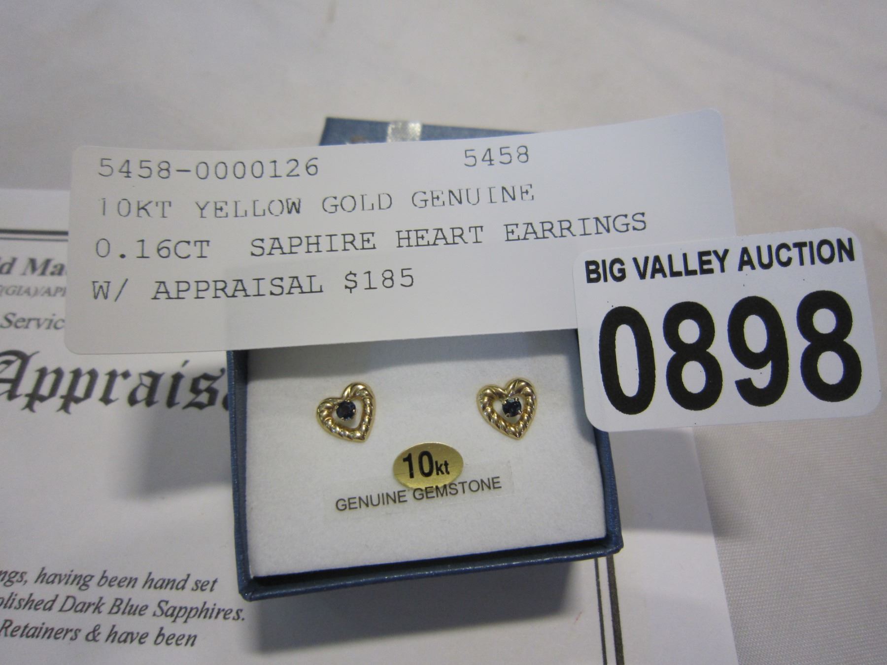 10KT YELLOW GOLD GENUINE 0.16CT SAPHIRE HEART EARRINGS W/ APPRAISAL $185