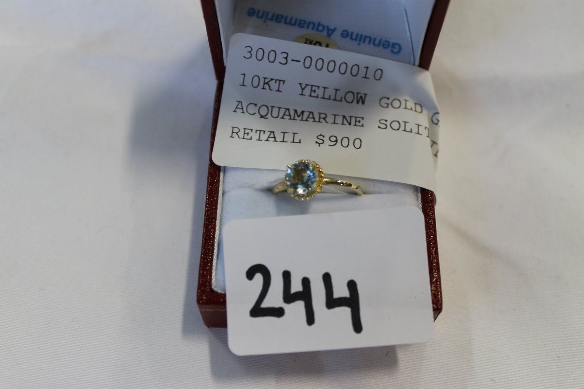 10KT YELLOW GOLD GENUINE ACQUAMARINE SOLITAIRE RING