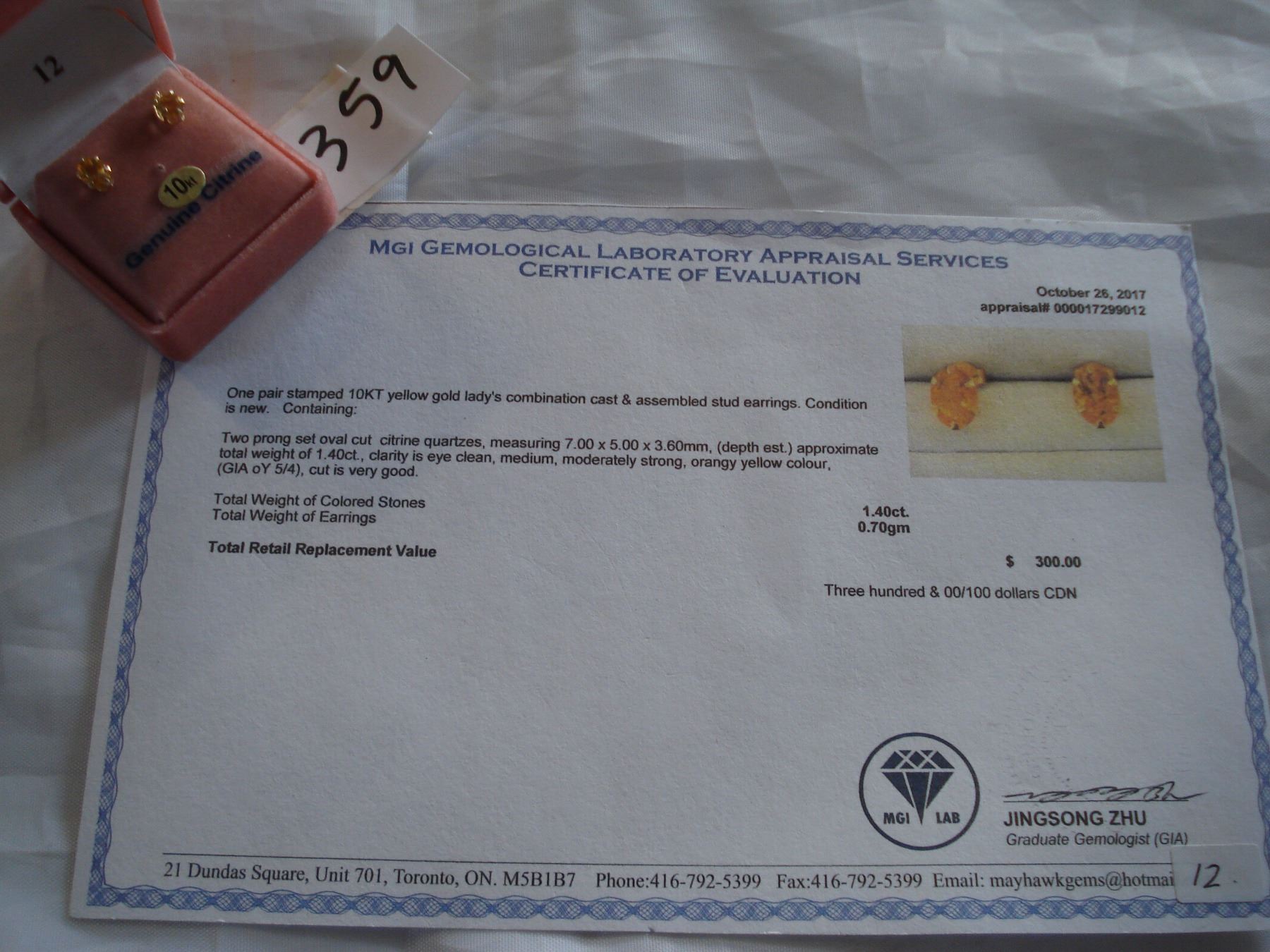 10KT YELLOW GOLD GENUINE CITRINE EARRINGS WITH APPRAISEL $300