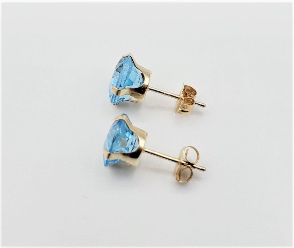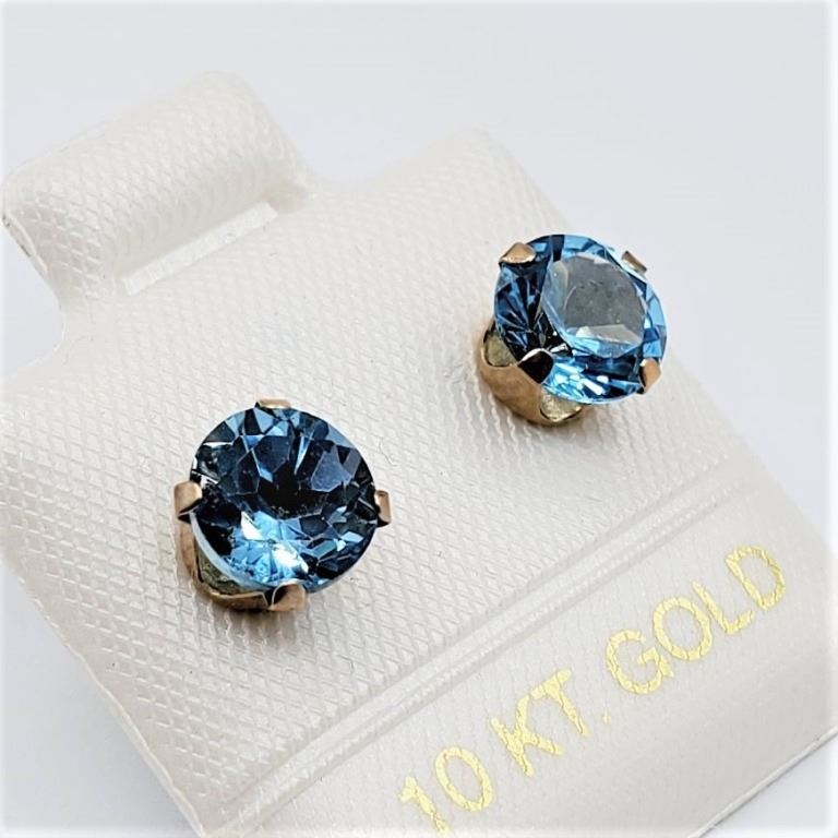 10KT YELLOW GOLD NATURAL BLUE TOPAZ 6MM EARRING, RETAIL $400.00.