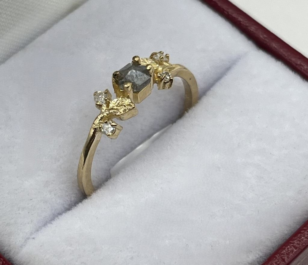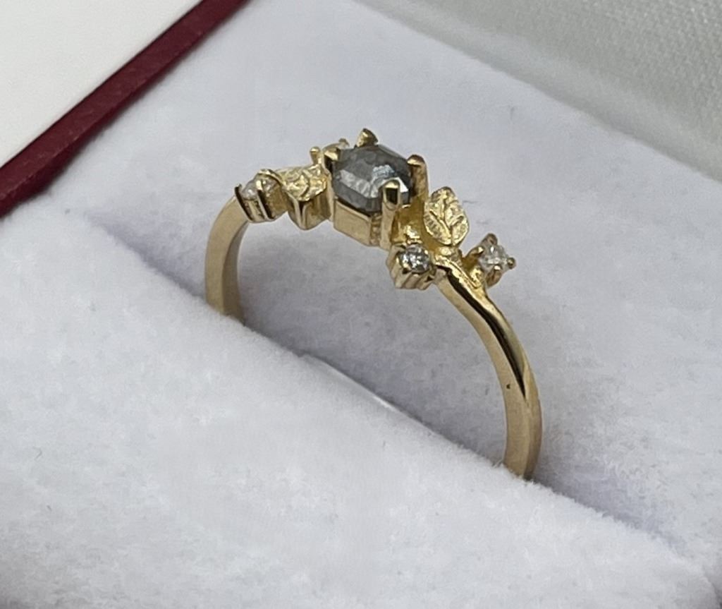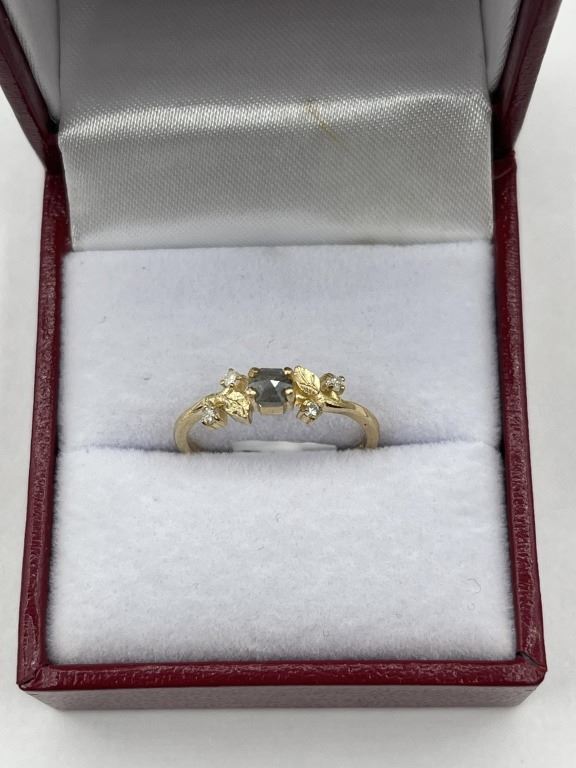10KT YELLOW GOLD NATURAL DIAMOND (0.34CT) RING, SIZE 5.75, W/A $1940.00. DIAMOND IS THE BIRTHSTONE F