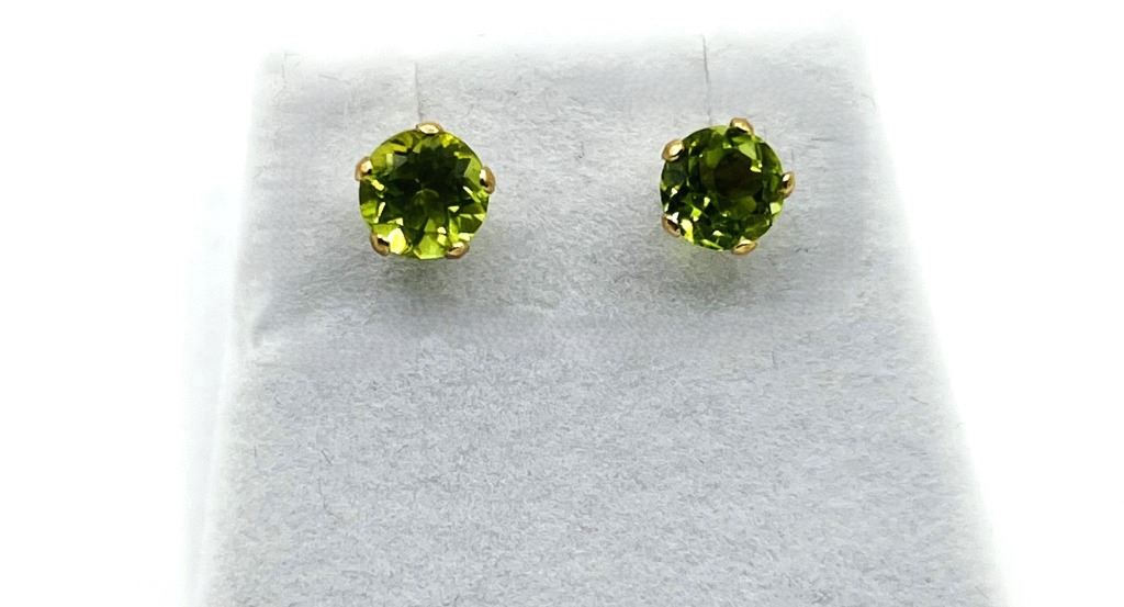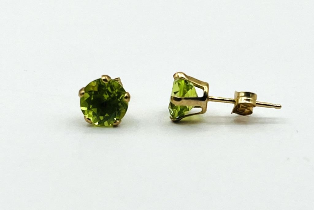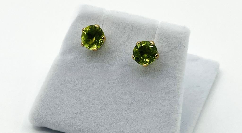 10KT YELLOW GOLD NATURAL PERIDOT EARRINGS, RETAIL $450.00. PERIDOT IS THE BIRTHSTONE FOR AUGUST.