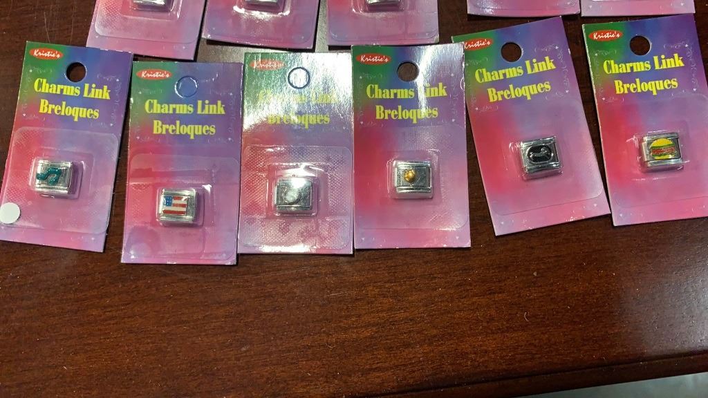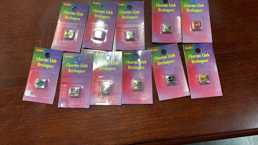 11 BOXES OF CHARM LINK BRACELET CHARMS, BOX OF CHARM KEYS AND BOX OF CHARM LINK BRACELETS