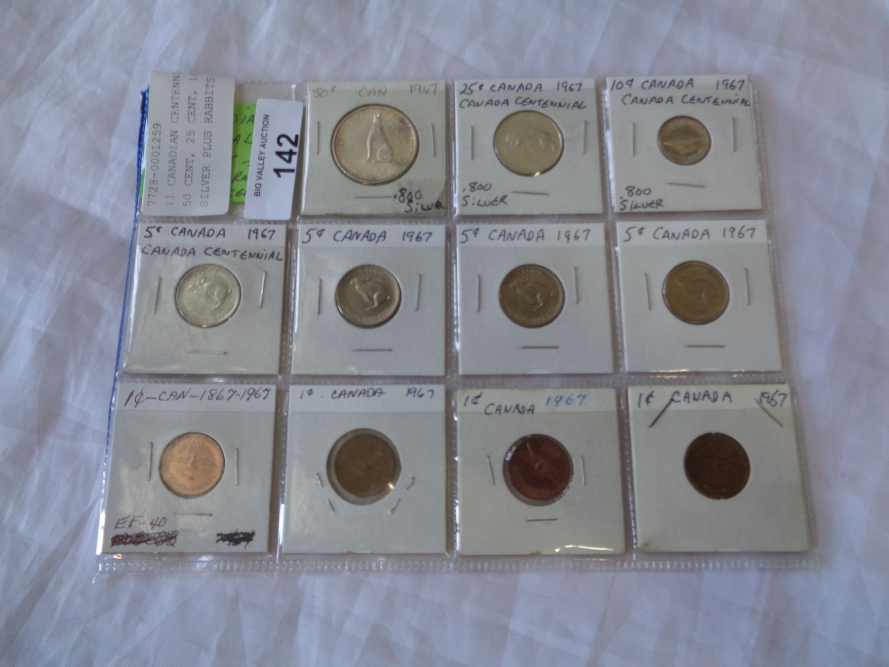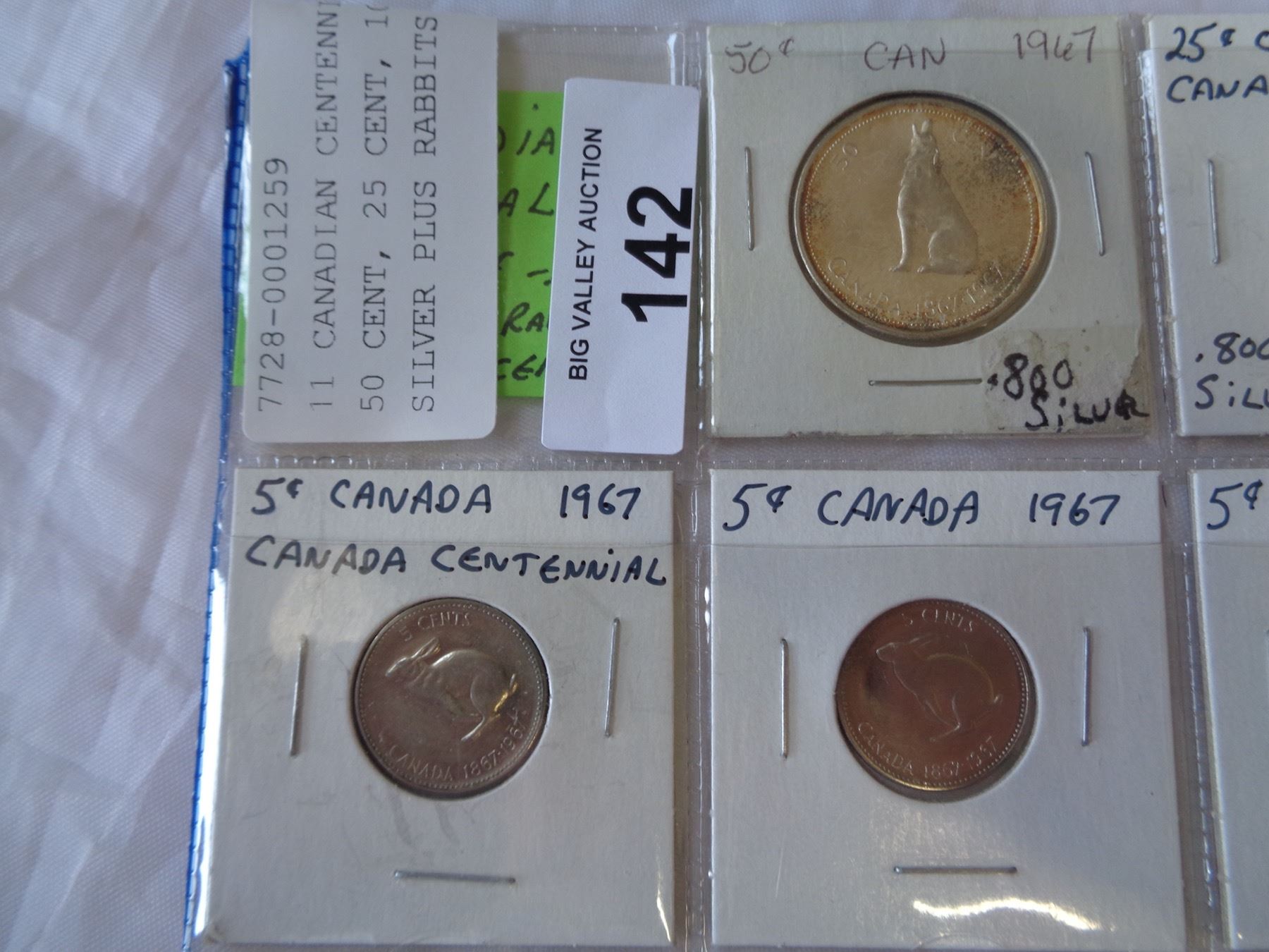 11 CANADIAN CENTENNIAL COINS 50 CENT, 25 CENT, 10 CENT .800 SILVER PLUS RABBITS 5 CENT DOVE 1 CENT
