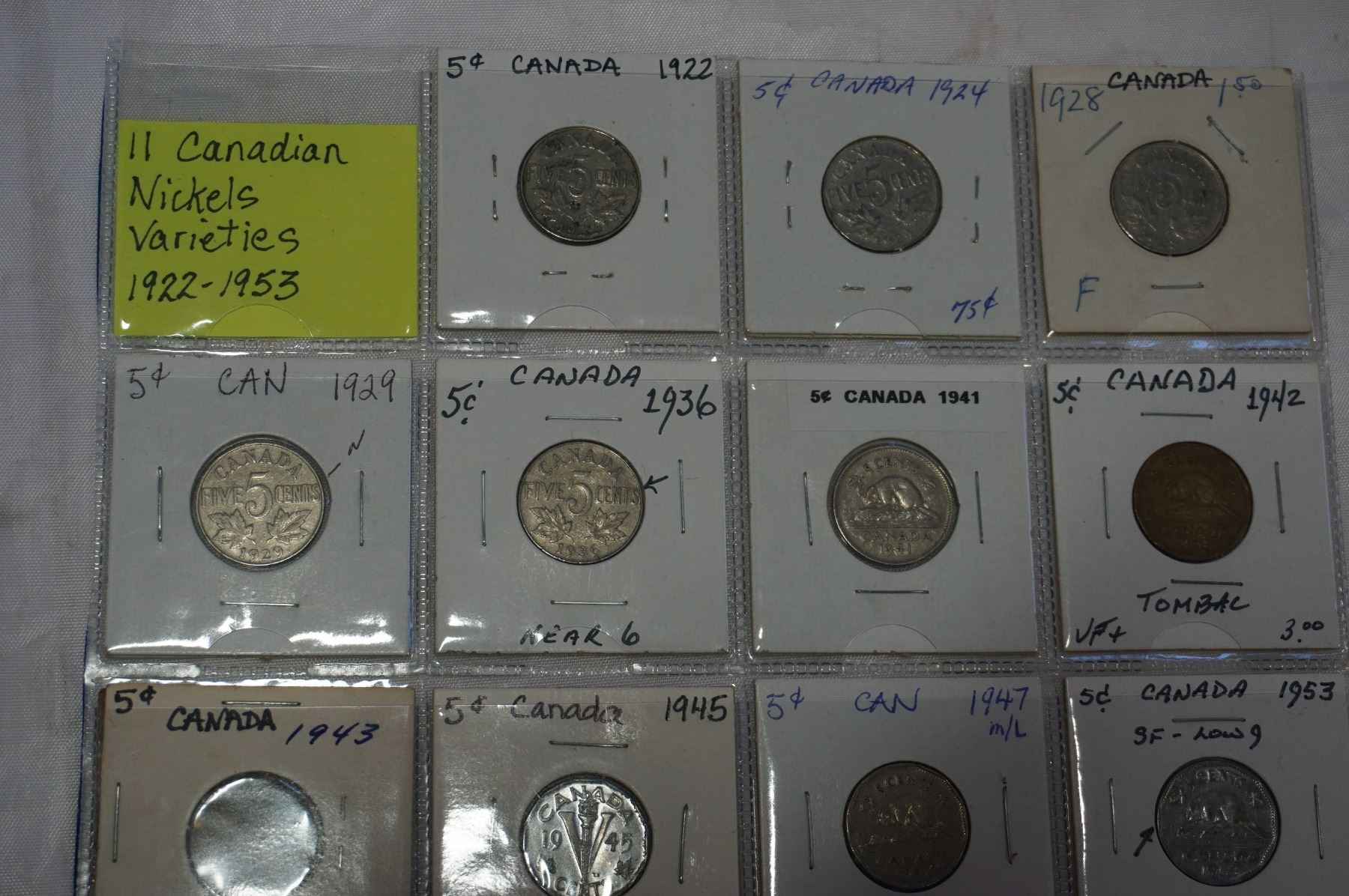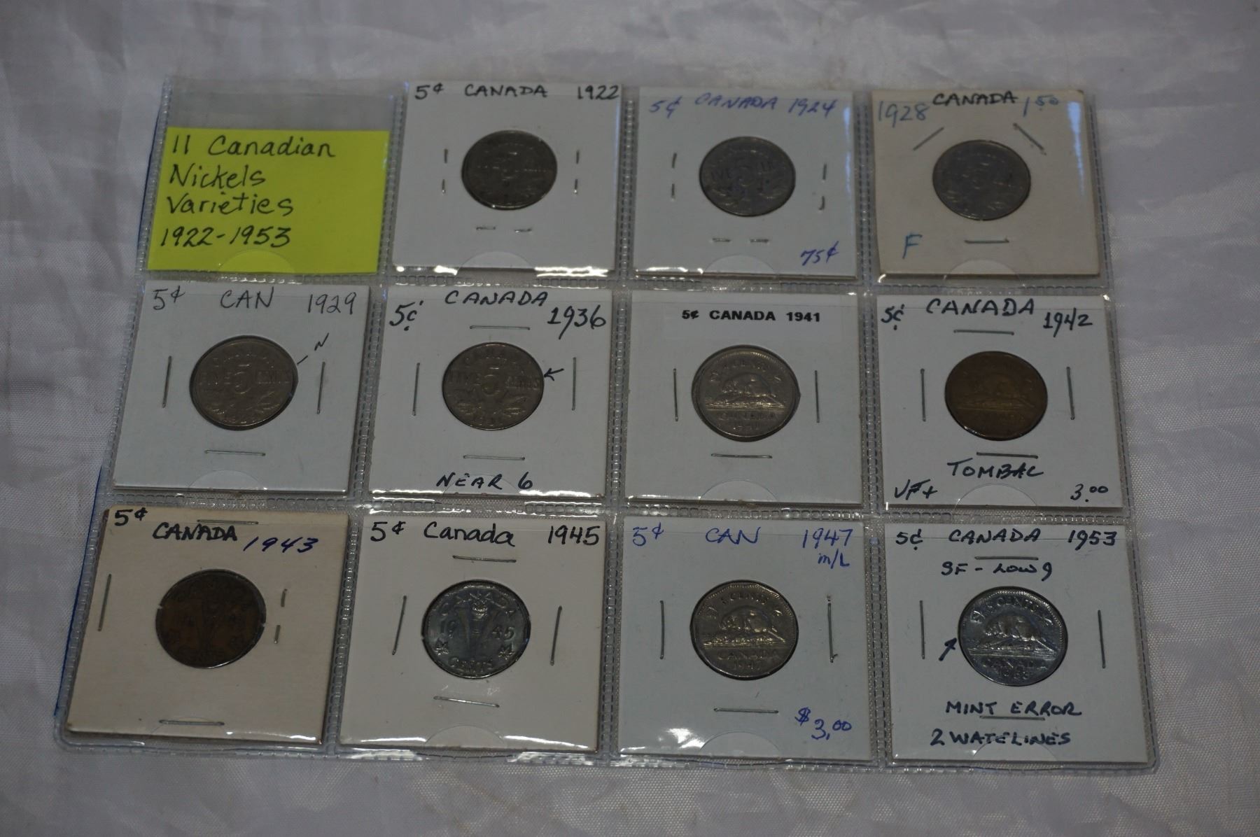 11 CANADIAN NICKELS, VARIOUS, 1922-53